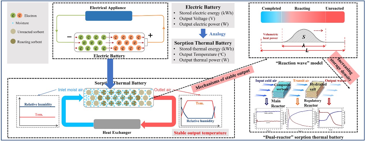 1月22日,王如竹教授领导的能源-空气-水(ITEWA)创新团队,在Energy Storage Materials上发表了题目为“Air Humidity Assisted Sorption Thermal Battery Governed by Reaction Wave Model”的研究论文,发现吸附反应床内的反应波现象并提出反应波模型,阐释了吸附热池实现稳定输出的机理,以及新型“双床吸附热池”设计策略。本文第一作者是制冷所博士研究生张艳楠,通讯作者是王如竹教授。