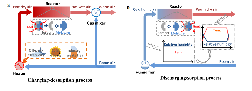 空气湿度驱动的吸附系统具有较强的湿度捕获能力和吸附热效应,在吸附储热、空气取水和除湿等领域有巨大应用前景。空气湿度驱动的吸附系统本质是一个热池,理想的吸附热池不仅需具有蓄热功能,还需要输出稳定的放热功率和放热温度,后者直接关乎吸附热池是否能够完美匹配用户需求且得到大规模推广应用。