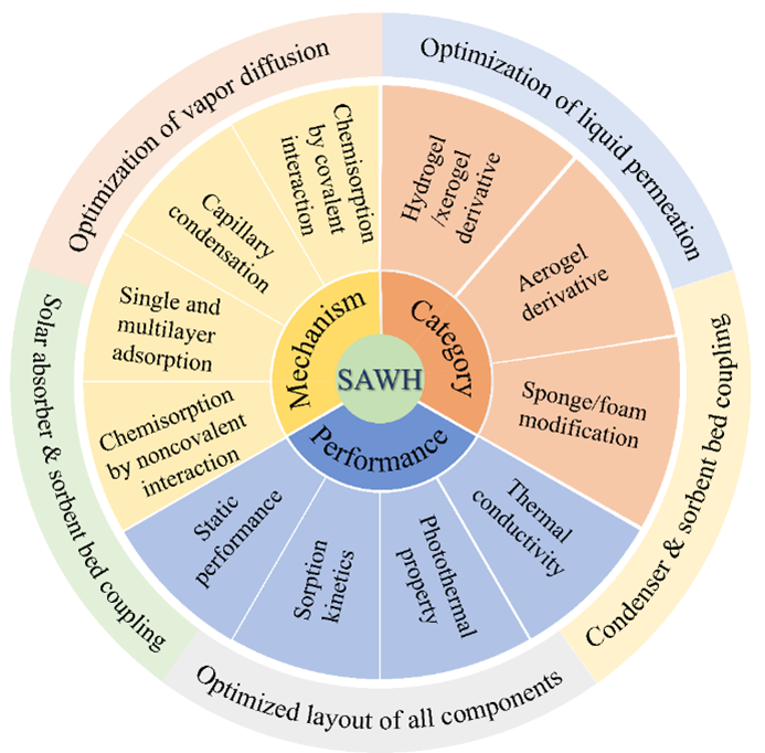 文章聚焦目前热点的吸附式空气取水技术,针对新一代取水吸附剂材料——吸湿多孔聚合物(HPP),总结和分析了该类吸附剂材料的吸附机理、吸附-解吸特性和取水应用潜力。针对基于HPP类吸附剂的空气取水系统,文章阐明了系统中吸附床、太阳能吸收器、冷凝收集器等各部件对系统工作能力的影响,提出了对整体系统的结构设计和耦合优化策略。文章最后展望了吸附式空气取水技术未来的发展思路和方向。该研究工作对下一代空气取水系统的开发构建具有重要指导意义,对吸附式空气取水技术的产业落地具有极大的推动作用。