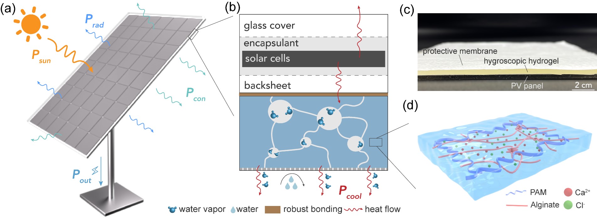采用吸湿性水凝胶实现光伏被动式降温的概念示意图与实物图