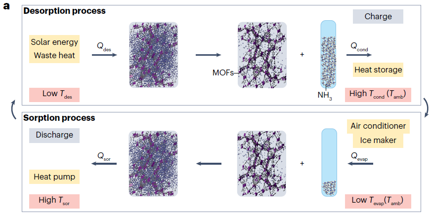 MOF-氨工质对在极端气候下用于热能转换和储存的示意图