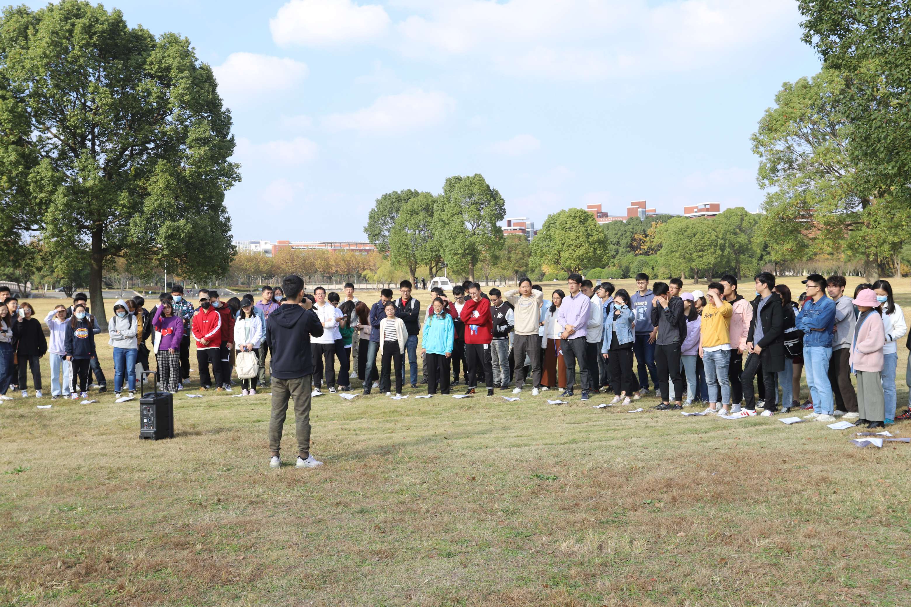 Players first gathered on the lawn in front of ME school to sign in, and the host introduced the game and scoring rules for the players. During the process, players in the same group got to know each other gradually.