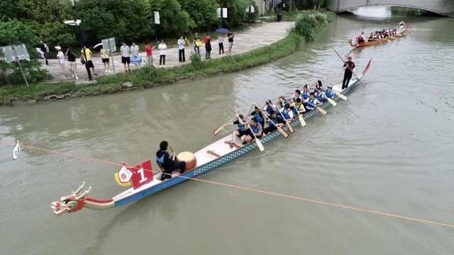 The dragon boat race and canoeing race were held in turn. The 200-meter dragon boat race had two rounds of competition and in each round two teams competed against each other.