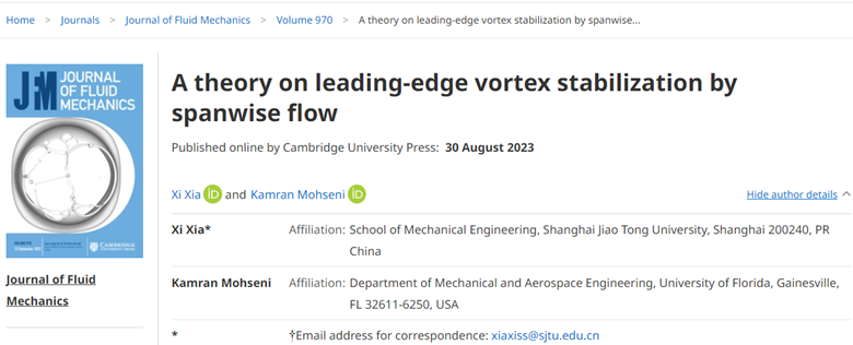 Dr. Xi Xia proposes a new theory on leading-edge vortex stabilization