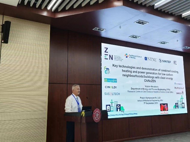 On September 7th to 8th, 2023, the Project Symposium of “Key technologies and demonstration of combined cooling, heating and power generation for low-carbon neighbourhoods/ buildings with clean energy – ChiNoZEN” was successfully held in School of Mechanical Engineering. Prof. Vojislav Novakovic and his team from Norwegian University of Science and Technology (NTNU) visited Shanghai Jiao Tong University (SJTU).