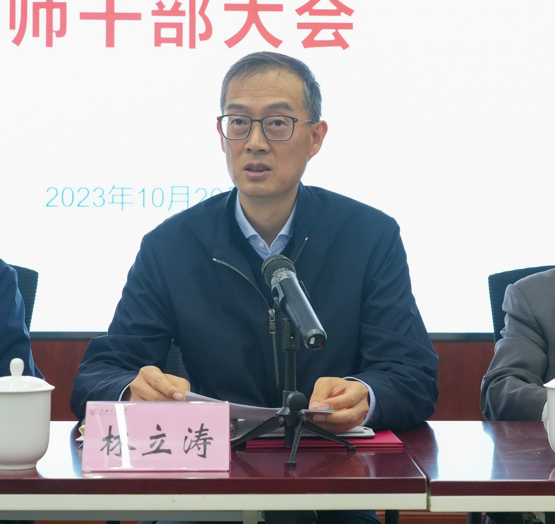 林立涛回顾了在学院工作的经历,特别是近两年的特殊时期与师生员工团结一心、共克难关,感谢学院领导班子以及师生的支持,表示学院今年迎来了110周年,在长期的实践中形成了“传帮带”的优良传统,营造了风清气正的良好环境,领导班子具有居安思危和责任担当的意识,师生员工不甘落后、努力奋进,不断推进学院工作向前发展,是一个具有历史长度、厚度和温度的学院。他祝愿学院在领导班子集体带领下,在师生员工共同努力下,再创辉煌、取得更大的成绩。