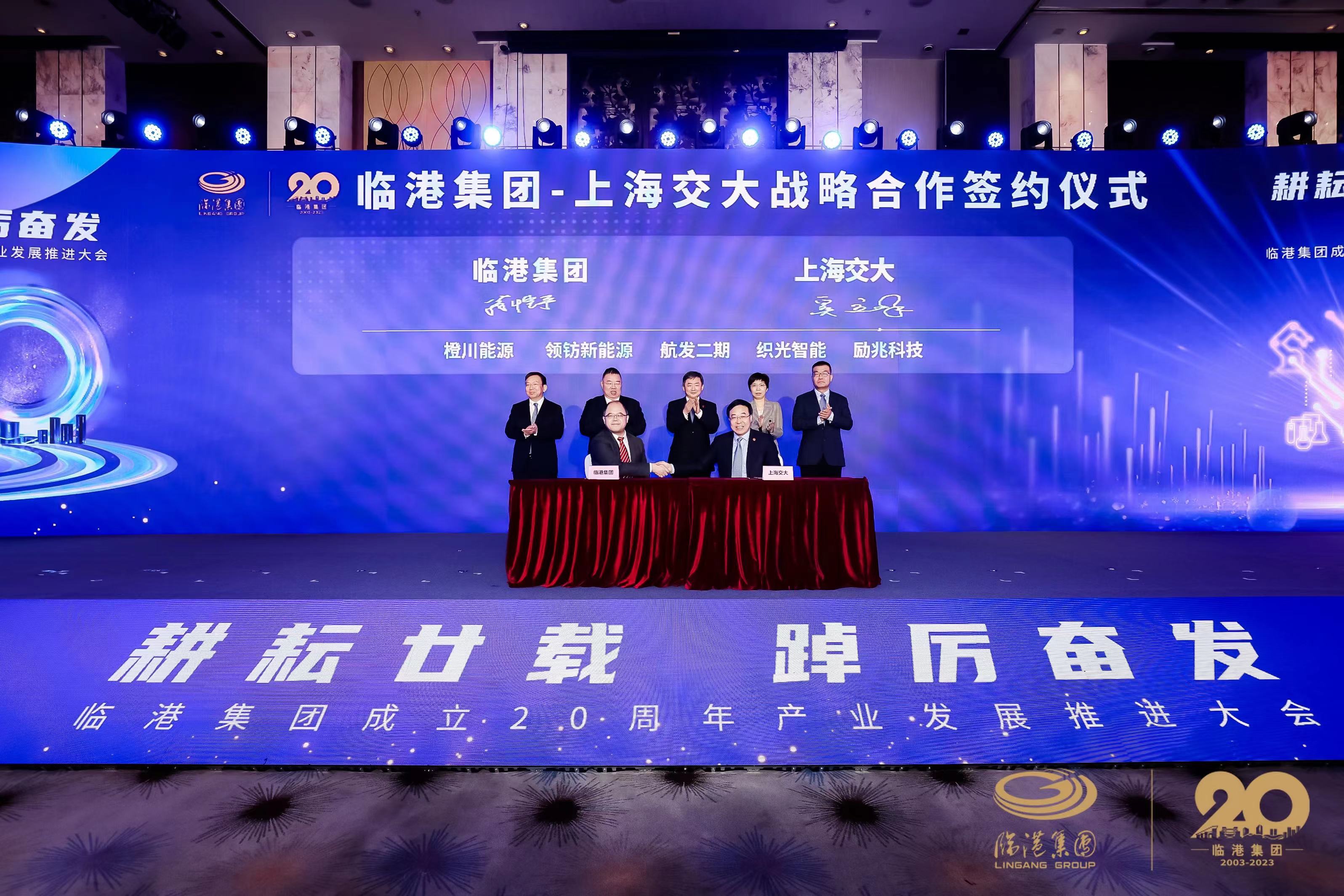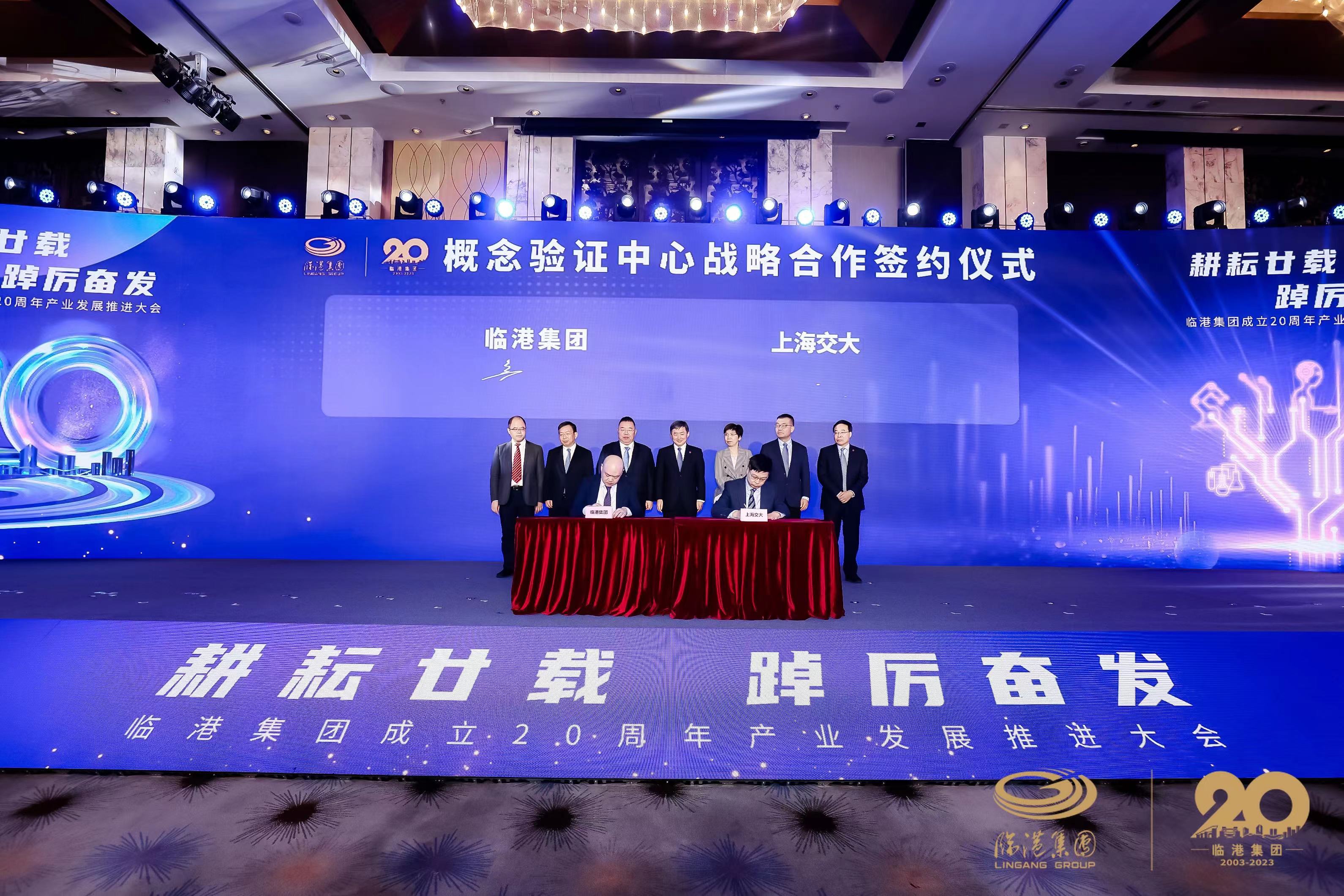 11月30日,在临港集团成立二十周年产业发展推进大会上,上海交通大学与临港集团签署深化合作和未来产业前沿技术概念验证中心战略协议。上海交通大学校长丁奎岭、上海市经济信息化委主任张英,临港集团党委书记、董事长袁国华,临港集团党委副书记、总裁翁恺宁,市商务委副主任张杰,临港新片区党工委委员、管委会专职副主任赵义怀、上海交通大学副校长奚立峰等领导参加签约仪式。
