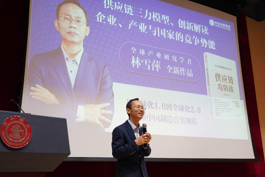 林雪萍从国际政治经济新局势下制造业面临的新挑战引入,深度解读了当今全球化2.0的供应链大分流格局,通过制造企业实例深入浅出地介绍了包含控制力、连接力和设计力的供应链“三力模型”,诠释了大国博弈之下的工业底层逻辑。他还介绍了在全球化2.0新格局下,以供应链为战略资源的中国制造发展对策,并与现场企业专家及师生进行了互动交流。
