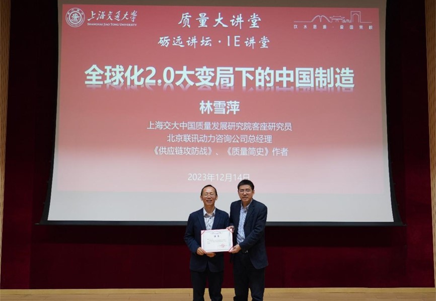 12月14日,上海交通大学中国质量发展研究院客座研究员、北京联讯动力咨询公司总经理、《供应链攻防战》作者林雪萍应邀,作为质量大讲堂暨砺远学术讲坛及IE讲堂嘉宾,带来主题为“全球化2.0大变局下的中国制造”的精彩报告。