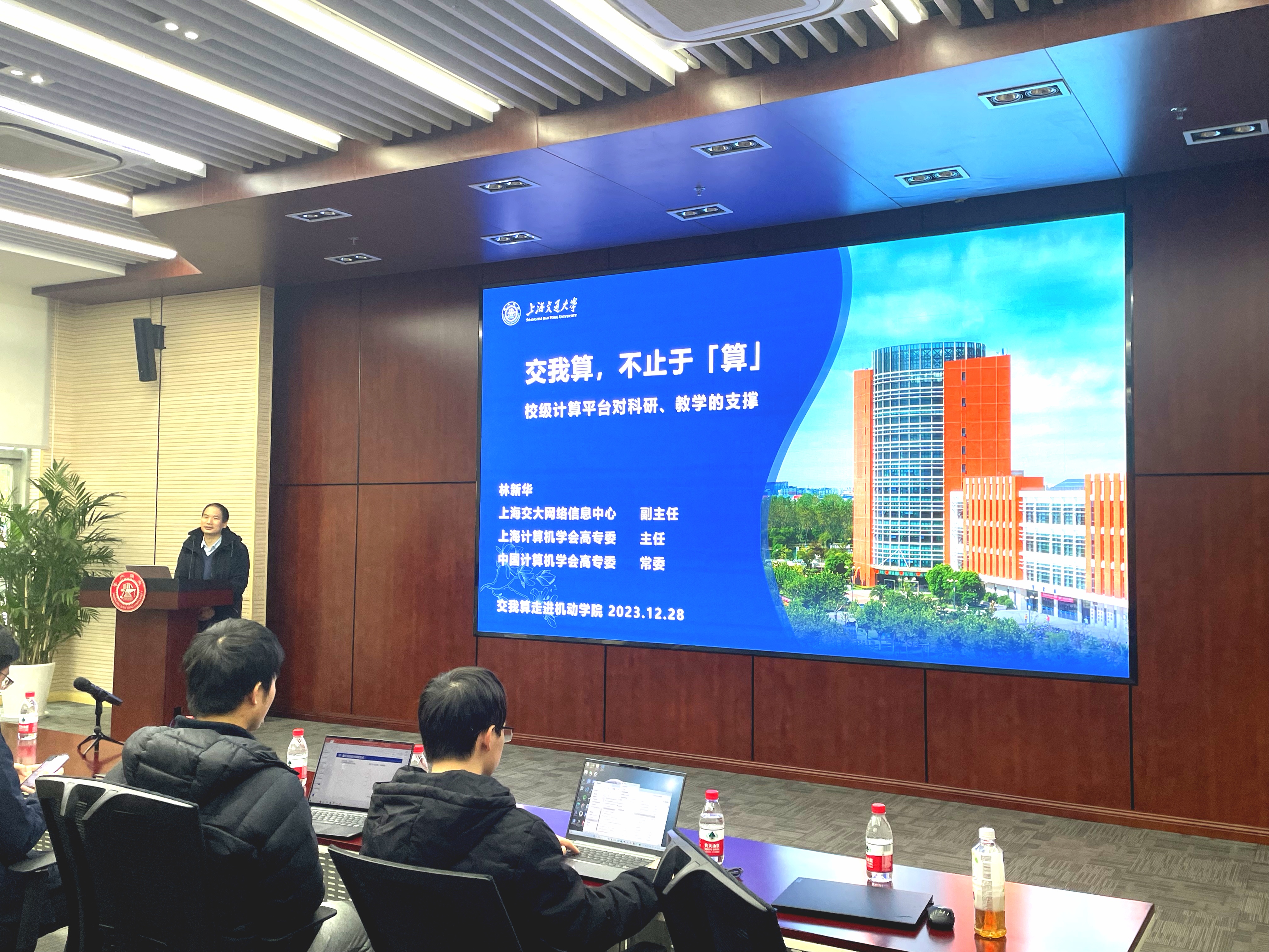 为助力师生更好地了解和利用校级计算平台资源,12月28日,校网络信息中心副主任林新华带领“交我算”团队一行,走进80足球直播吧,为学院师生作了五个主题的“交我算”平台服务与应用分享。学院副院长瞿叶高、师生代表等30余人参加了活动。