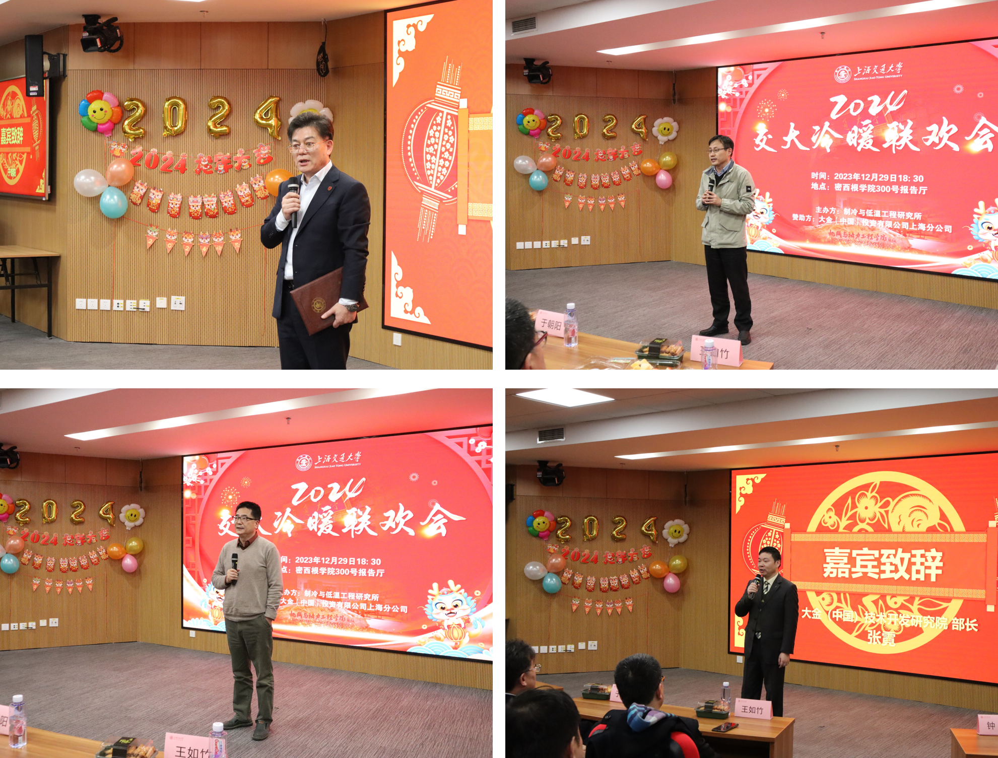 于朝阳、胡永祥、王如竹、张霓分别致辞,回顾总结了研究所师生在2023年中取得的成绩,以及为制冷领域的发展做出的贡献,鼓励全体师生共同努力,在新的一年奋勇前行、再创辉煌。