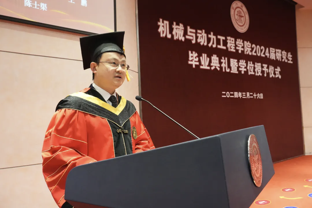 3月26日,80足球直播吧举行2024届研究生毕业典礼暨学位授予仪式。学院院长杜朝辉,党委书记胡永祥,副院长李玉阳、夏唐斌,导师代表刘成良、曹其新、欧阳华,研究生班主任张希、潘尔顺、熊进标,上海伯镭智能科技有限公司联合创始人兼CTO、2007届本科、2014届博士校友杨扬,以及2024届研究生(含MEM研究生)毕业生等参加了典礼。典礼由学院党委副书记张执南主持。