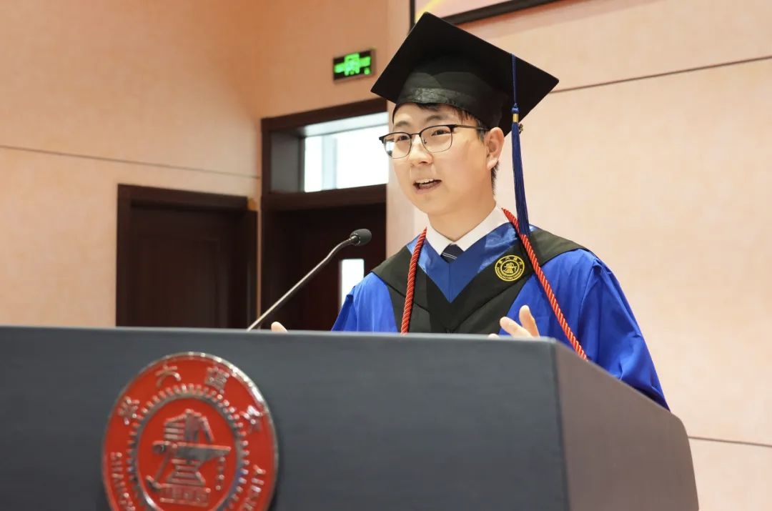 优秀毕业生代表隋思哲分享在交大成长的幸运与挑战,鼓励大家在新的人生篇章中砥砺前行,拥抱可能,无限进步。