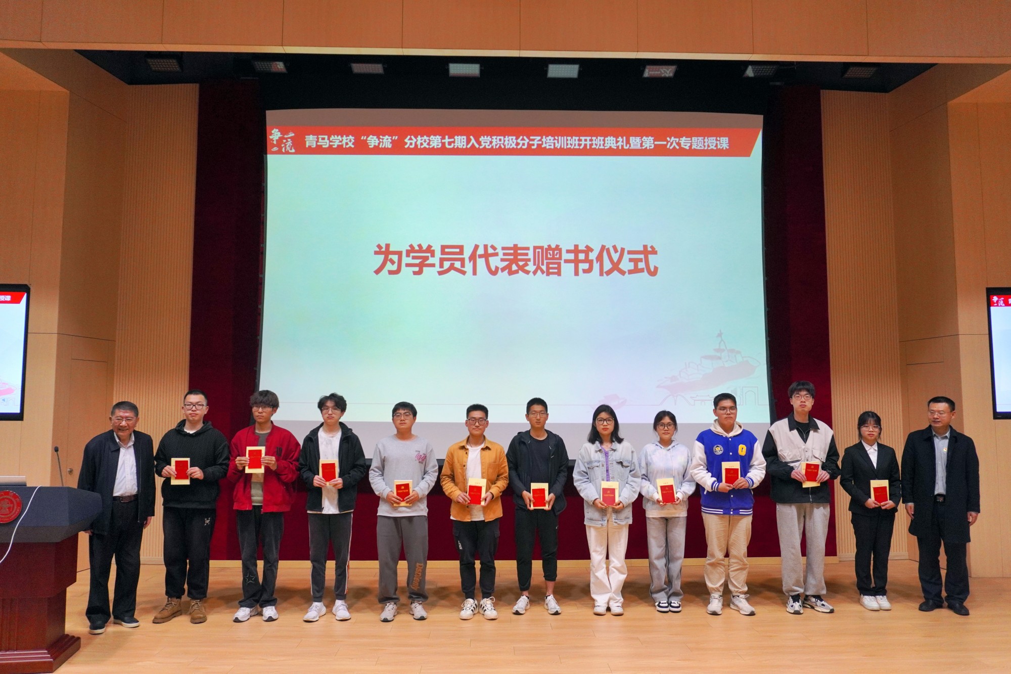 会上举行了授旗和赠书仪式。培训班副班主任李哲介绍了本期培训班总体安排,期望培训班学员抓住学习机会,通过专题授课、网络党校、实践教学、志愿服务等形式,提升政治理论素养,坚持学思用贯通、知信行统一。