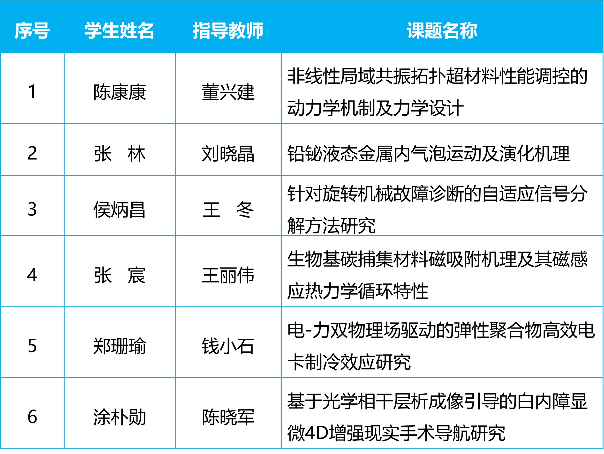 近日,2023年度首批国家自然科学基金青年学生基础研究项目(博士研究生)立项名单公布,我院6名进入会评答辩的博士生全部获得立项资助。