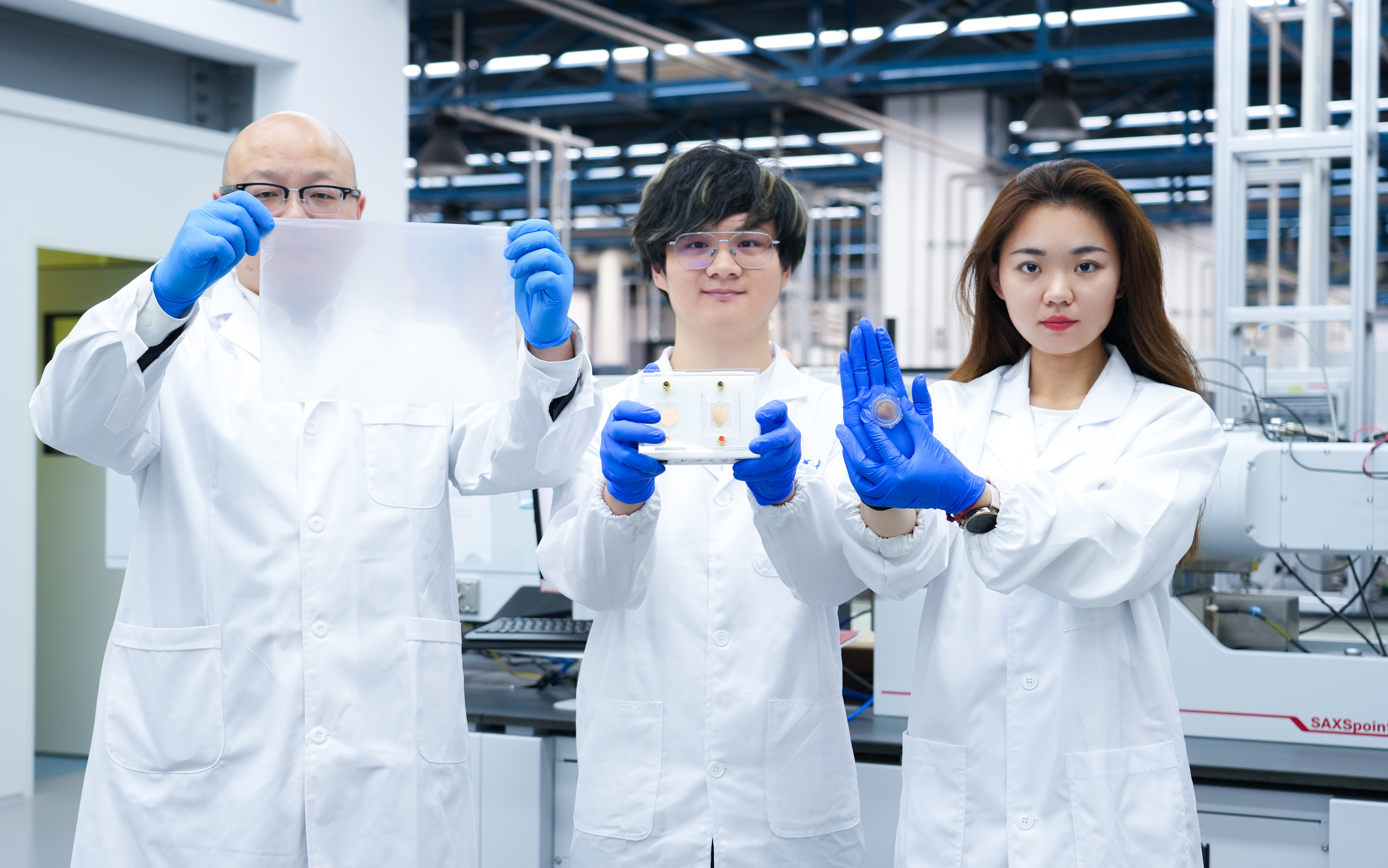 研究团队结合弛豫铁电高分子材料在电场作用下的电致熵变(电卡效应)和电致伸缩效应,设计与制造了“自驱动”的高分子制冷薄膜系统。该系统无需外加驱动装置,而是优化了高分子制冷工质本身的机电耦合效率,设计了电-机械形变与电卡制冷效应协同驱动的方法,实现了轻量化、高能效比、高精度和智能化的制冷效果。