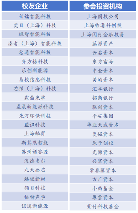 2010届博士校友、盟识科技创始人、CEO邱长伍,2013届本硕博校友、上海麟羿创始人、CEO郑珂威,2011届硕士校友、斯笃恩智能总经理吴岐山,1995届本科校友、苏州谱睿源创始人、董事长兼CEO吴明炜,1986届本科校友、海德韦尔创始人、董事长兼CEO顾茸蕾,1997届本科校友、九天画芯创始人、CEO张锦, 2021届本硕博校友、臻锂新材联合创始人高杰,2002届本科校友、领目科技创始人、董事长兼CEO安冰翀参加了校友企业路演宣讲。校友们结合各自企业发展,聚焦无人驾驶和自动驾驶、新能源领域关键材料和装备研发、功率半导体和器件封装及检测、人工智能应用的数据安全、虚拟显示技术等领域的技术创新进行了经验分享和现场交流。