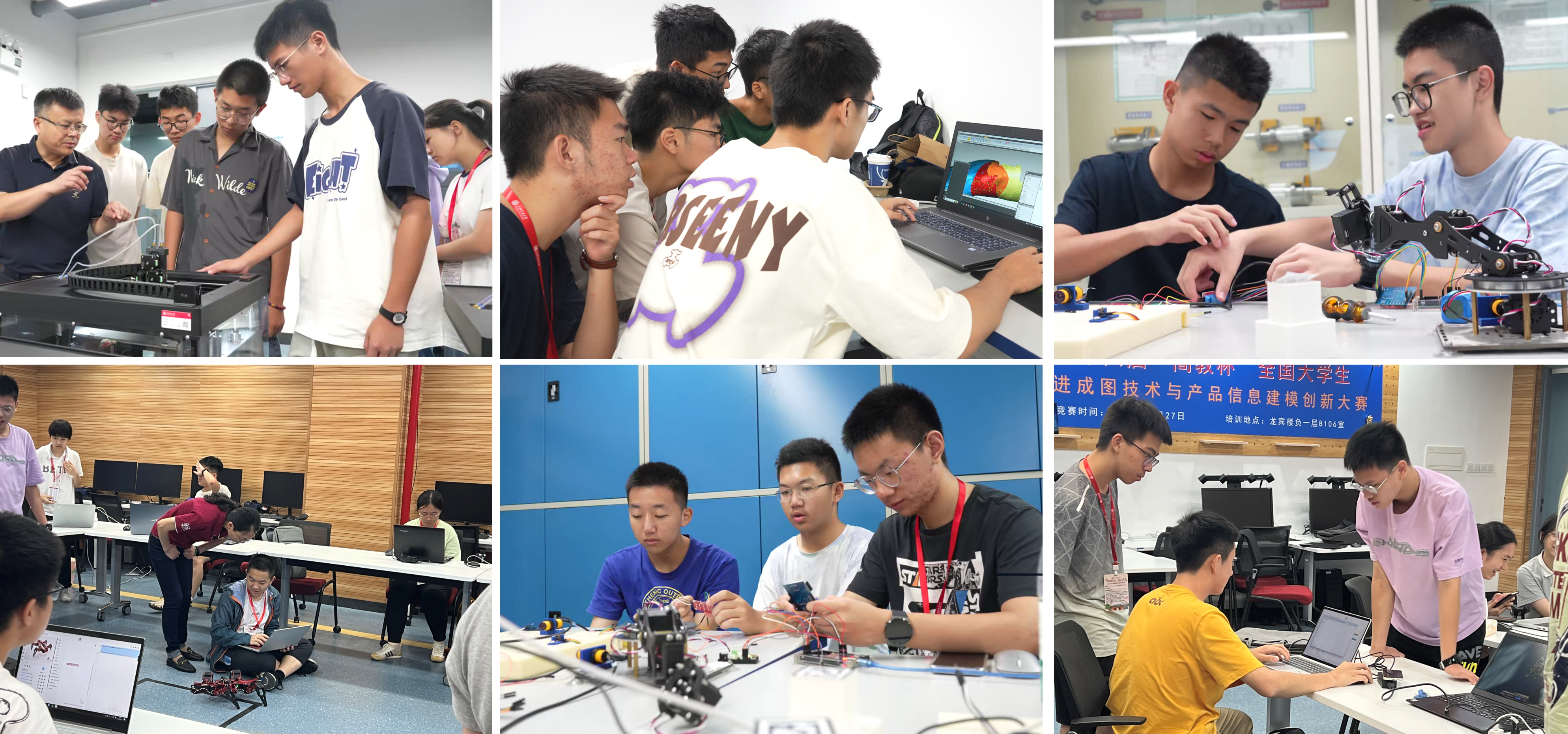 活动期间,每位营员可选择2项感兴趣的模块进行实践训练。“数字化逆向制造综合实践”模块由刘振峰主讲,营员们积极参加3D扫描与打印等实践操作,加深了对机械运动以及数字化逆向制造的认知和理解。“变胞机器人运动控制实践”模块由唐静君主讲,通过引导营员们学习图形化的python编程及传感器应用,完成机器人循迹和迷宫避障的挑战任务,激发大家的内生学习动力与研究兴趣。“四轴机械臂运动控制实践”模块由何嘉伟主讲,营员们通过组装、运用arduino编程控制四轴机械臂,使其完成识别与分拣任务。