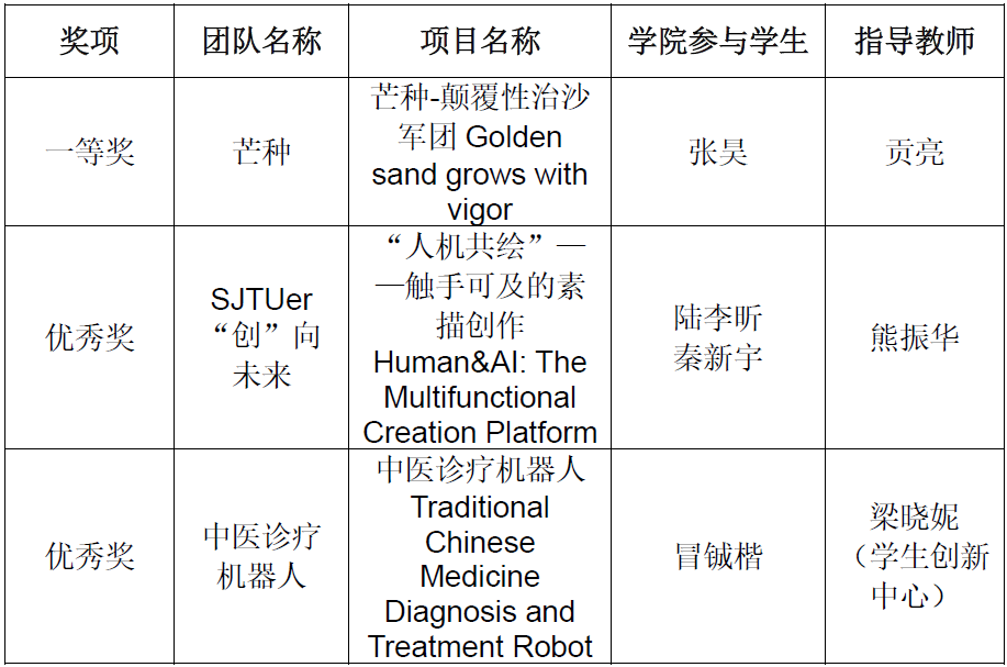 8月9-12日,2024年“共创未来”中美青年创客大赛总决赛及系列活动在北京举办,总决赛共有来自中美两国的500余名青年创客组成的114支团队参与。经过多个环节的角逐,我院学子参与的芒种团队脱颖而出荣获一等奖,SJTUer“创”向未来和中医诊疗机器人2个团队分别获得优秀奖。