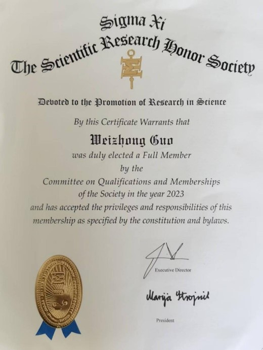 Sigma Xi科学研究荣誉学会(The Scientific Research Honor Society)于1886年在美国康奈尔大学成立,是非盈利、跨学科的国际科学研究荣誉组织,旨在表彰在科学研究方面具有卓越表现的学者,鼓励科学和工程领域研究人员之间的友好合作,在促进科学研究和发展、推广科学教育和科学普及等方面发挥了重要作用,出版有《美国科学家》杂志。Sigma Xi会员涵盖来自全球200多个国家、各学科领域的科学家、工程师、医生等,包括200余名诺贝尔奖获得者。