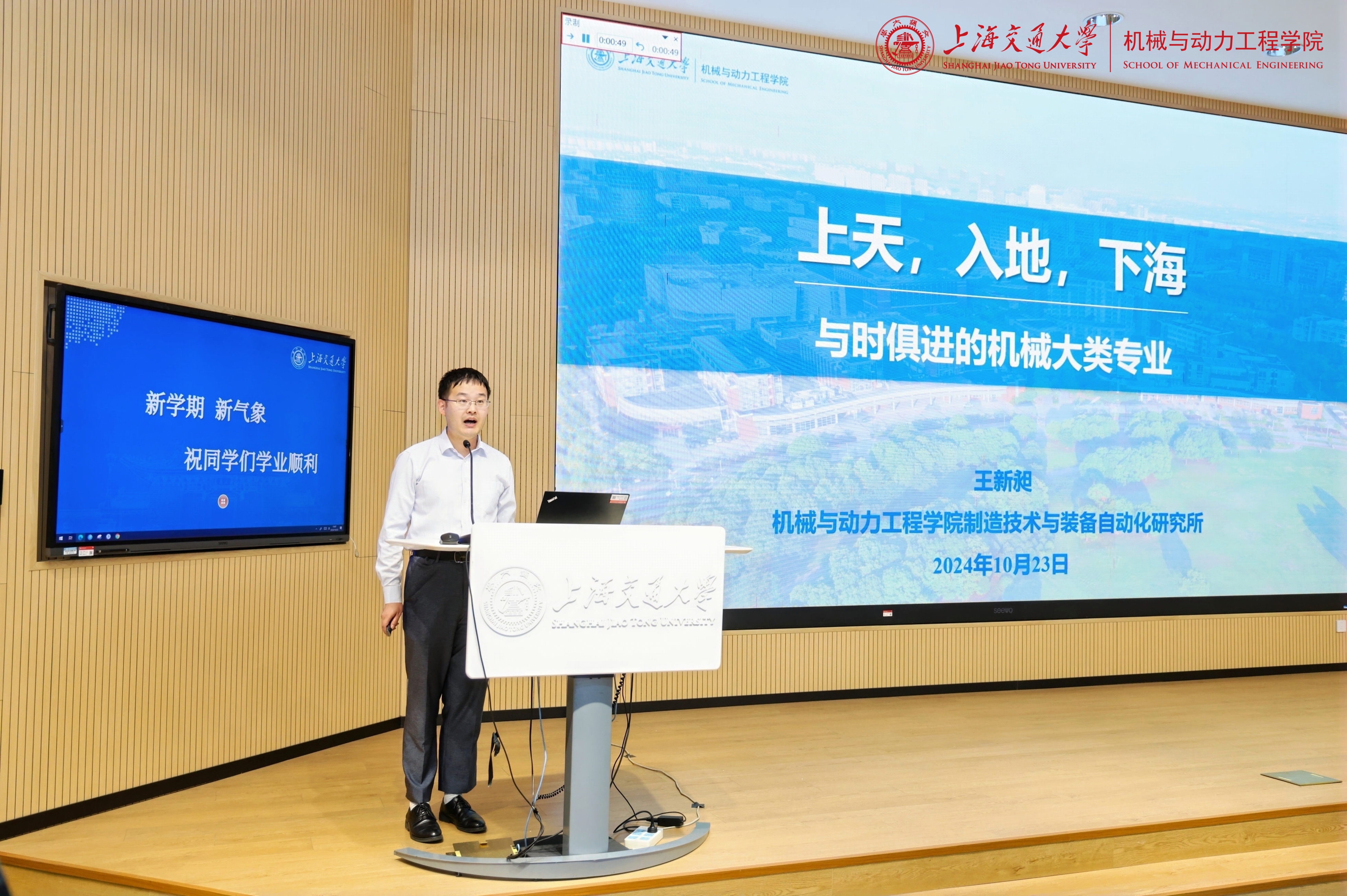机械工程专业教学负责人王新昶围绕“上天,入地,下海—与时俱进的机械大类专业”,介绍了机械类专业的研究前沿、人才需求和学生的毕业去向,号召大家将个人发展与国家社会需求充分融合,成为制造强国的栋梁之才。