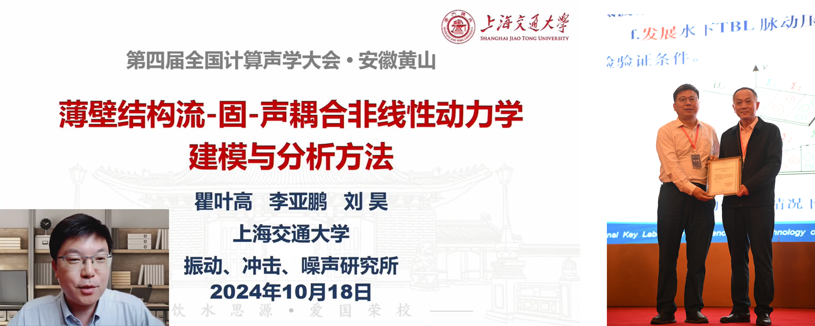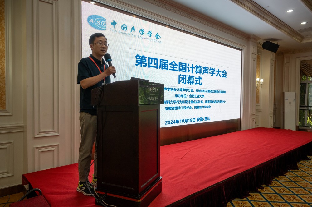 闭幕式由合肥工业大学郑昌军教授主持。蒋伟康和计算声学分会副主任委员张海刚为获得优秀论文奖的10位报告人颁发了荣誉证书。