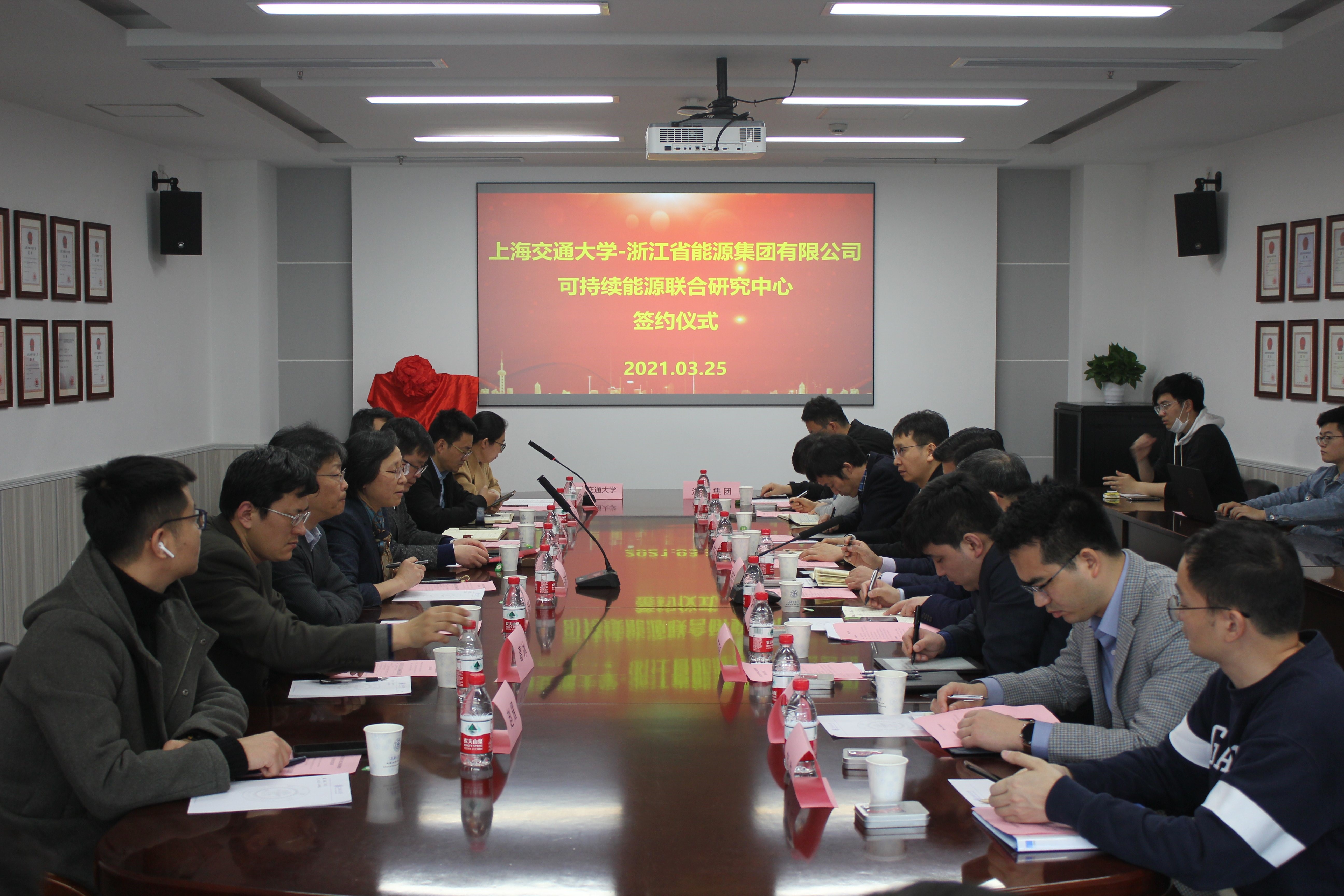 3月25日,上海交通大学-浙江省能源集团有限公司(以下简称:浙能集团)“可持续能源联合研究中心”成立及签约仪式举行。浙能集团总经理助理陶晓东,浙能技术研究院院长秦刚华、副院长范海东、副院长孙士恩,浙能集团科信部主管李清毅,上海交大副教务长吴静怡、80足球直播吧党委书记杜朝辉、动力与能源工程系主任代彦军等参加了签约仪式。仪式由制冷与低温工程研究所党支部书记葛天舒主持。