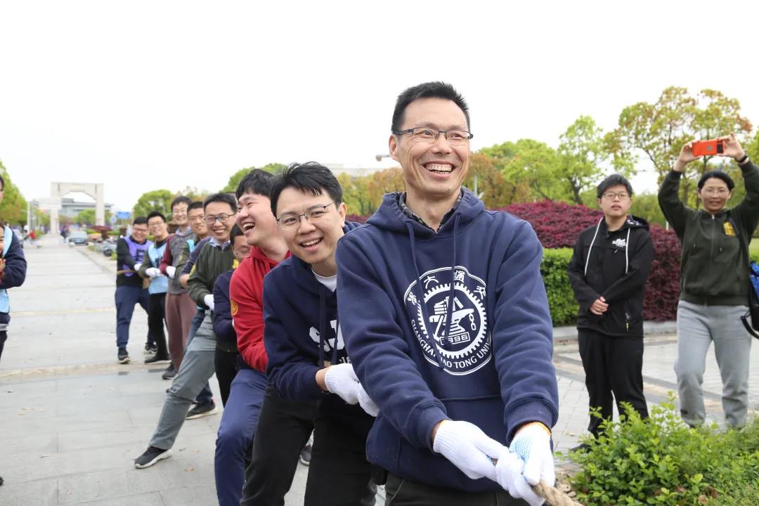 四个趣味项目结束,现场组织了师生拔河友谊赛。同学们跃跃欲试,都想与老师们来一次“正面对决”,老师们也全心投入,享受着与学生们的拔河过程。