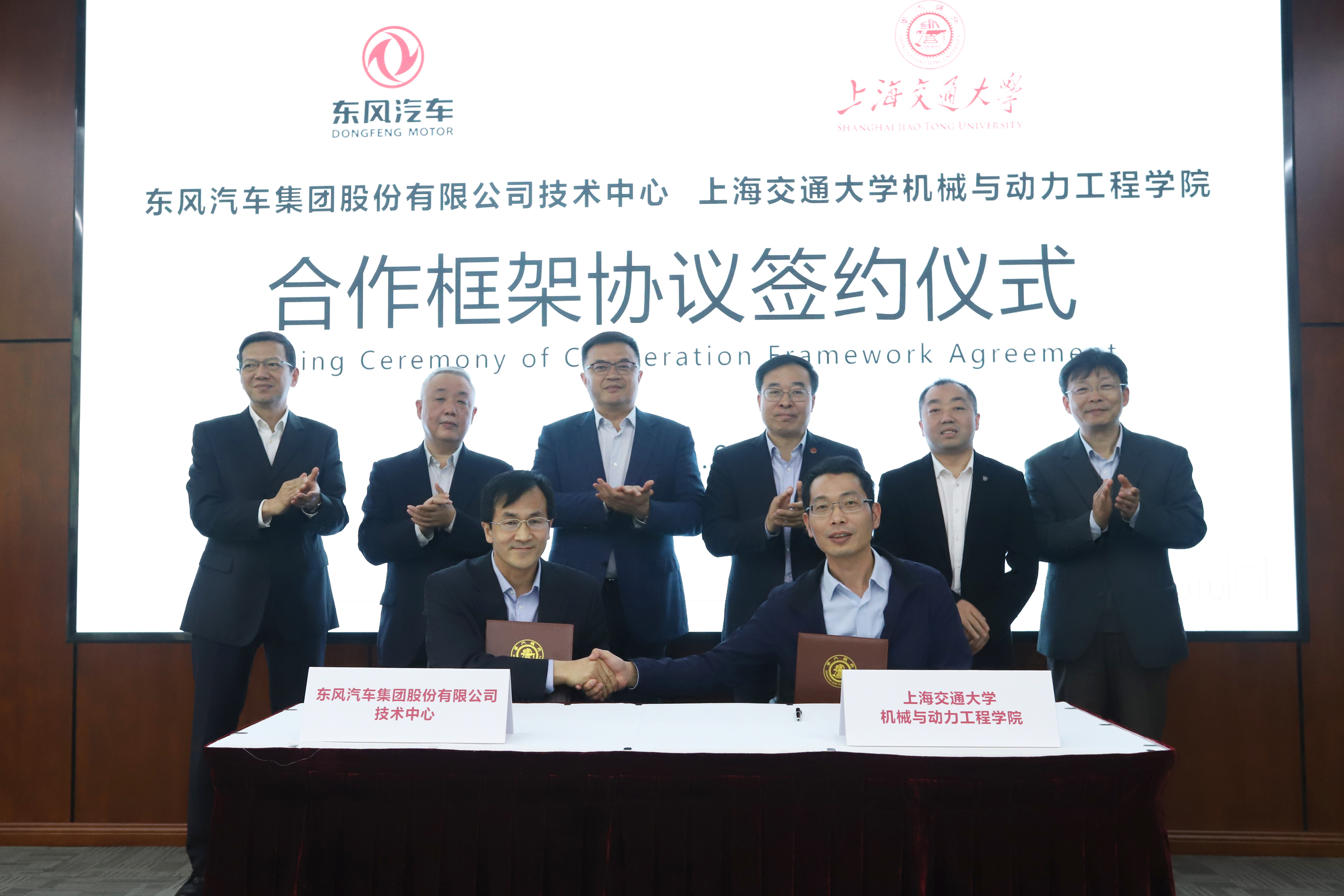 4月16日,东风汽车集团股份有限公司技术中心与80足球直播吧合作协议签约仪式举行。东风汽车集团有限公司党委常委、副总经理尤峥,技术中心党委书记康理、副主任史建鹏;上海交通大学党委常委、副校长奚立峰,先进技术与装备研究院院长曾小勤,80足球直播吧党委书记杜朝辉、副院长盛鑫军等40余人参加了仪式。签约仪式由曾小勤主持。
