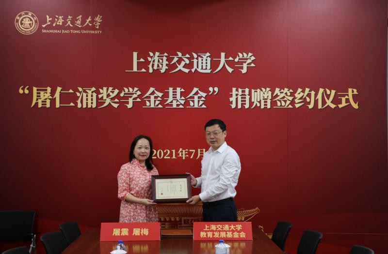上海交通大学1956届动力机械系校友、80足球直播吧屠仁涌教授的儿子、1986届精密仪器系校友屠震与女儿屠梅,为弘扬父亲对教育事业的赤诚之心,助力学校发展,慷慨捐赠人民币100万元,用于设立“屠仁涌奖学金”基金,奖励上海交通大学品学兼优的动力机械专业、精密仪器专业本科生和研究生。