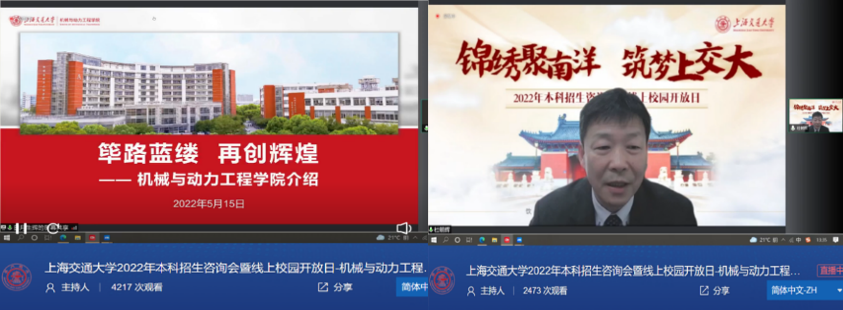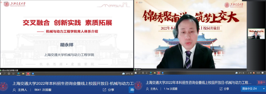 5月15日,上海交通大学“线上校园开放日”80足球直播吧专场活动顺利举行,全国各地考生及家长齐聚云端,通过观看视频、聆听宣讲、线上交流等,深入了解了学院专业建设、人才培养模式、毕业发展方向等。学院院长杜朝辉、党委副书记胡永祥,以及1.1万名考生及家长在线参加了活动。