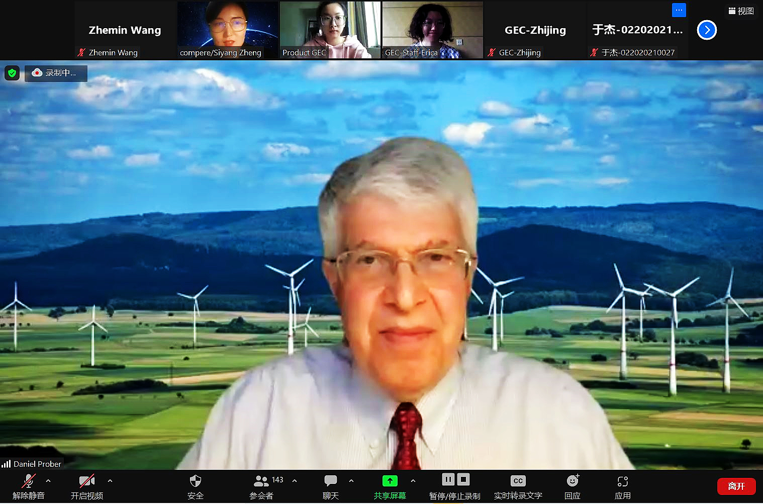 耶鲁大学本科生教育主任、应用物理教授Daniel Prober介绍了21世纪新能源技术的构成及应用,表示煤炭、石油、天然气等传统化石能源消费主体带来的能源安全、环境问题日益突出,发展可再生能源是保障能源安全、加强环境保护、应对气候变化的重要途径。他就零碳城市的实现技术手段与学生现场展开了探讨。