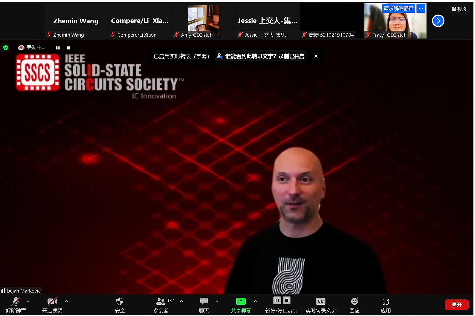 加州大学洛杉矶分校电子与计算机工程教授Dejan Marković介绍了数字时代的超大规模集成电路与芯片设计的研究,表示超大规模集成电路设计,尤其是数字集成电路,通常采用电子设计自动化的方式,已成为计算机工程的重要分支之一,他围绕机械电子与先进制造技术的前沿与学生进行了交流。