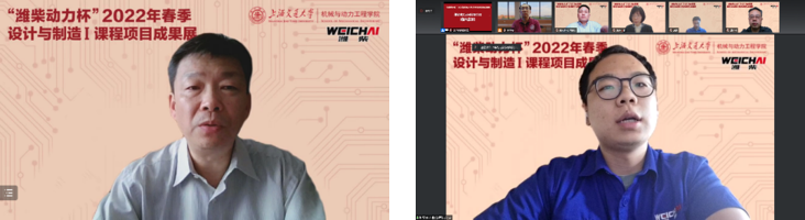 学院院长杜朝辉、党委副书记胡永祥,潍柴动力公司人力资源部陈朱友和、发动机研究院谷允成博士,以及全体课程教师参加了活动。杜朝辉指出在疫情期间完成课程设计不易,强调了设计与制造类课程形式改革是培养学生能力的重要举措,同时勉励学生努力学习,积极实践,培养工匠精神。胡永祥指出,虽然在疫情期间课程设计无法付诸于制造、加工,但是实验室开放后鼓励学生积极进行制造加工的实践,学院会给予最大的支持,同时他也勉励学生再接再厉,在课程学习中不断打磨自身能力和技术,精益求精。陈朱友和介绍了潍柴动力人才培养工作,希望双方在校企合作、产教融合等方面进一步深化合作,提高人才培养质量。