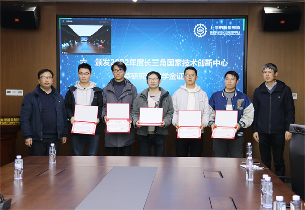 会上宣读了本年度奖学金获奖名单,并颁发荣誉证书。获奖学生代表杨炳鑫分享了自己在临港基地的学习和工作体验,以及平台对其科研工作和个人成长的帮助,鼓励学弟学妹们扎根临港,在行业历练中成就未来。