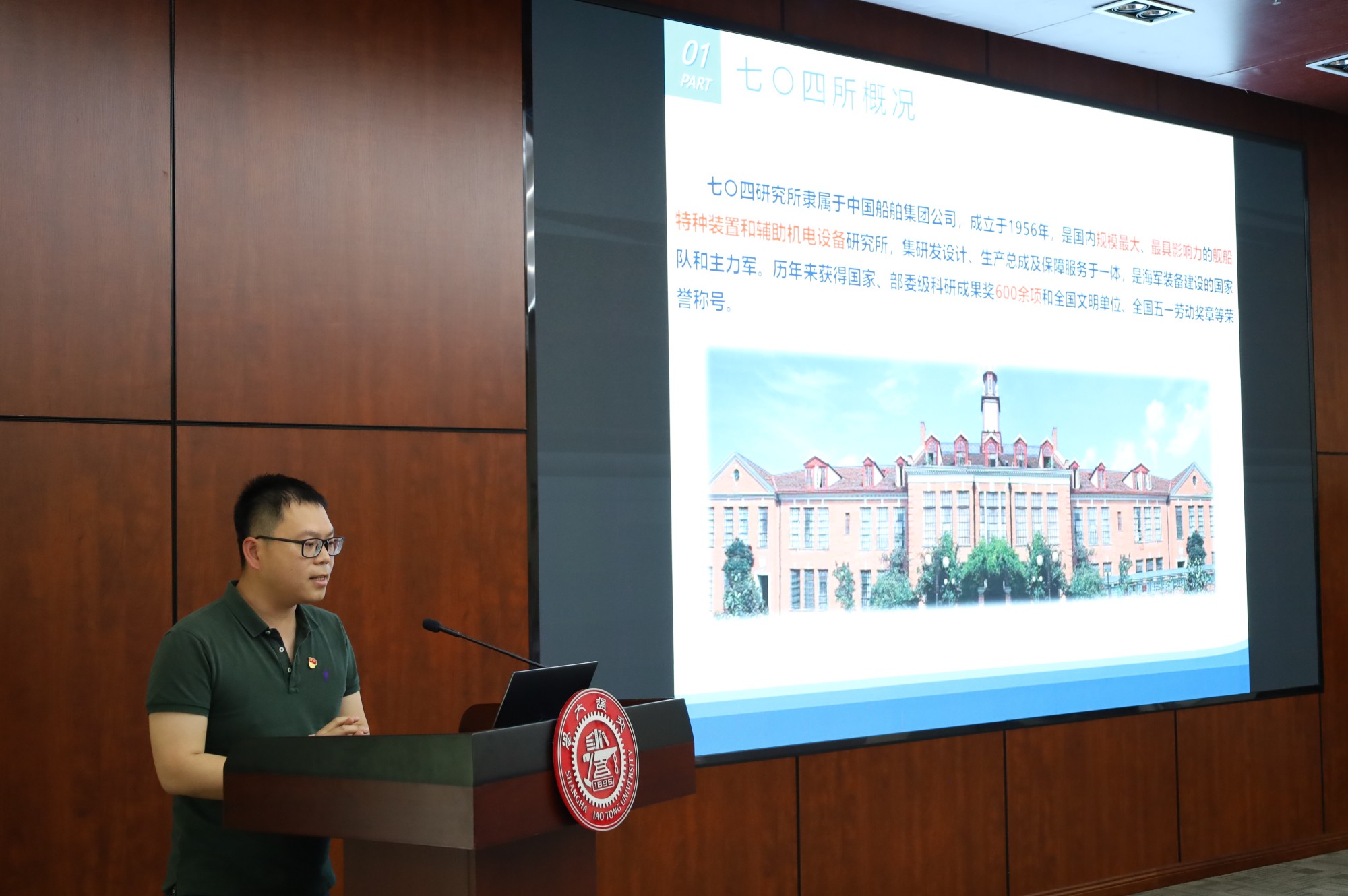 5月16日,80足球直播吧智能汽车研究所师生党支部与中船集团公司第704研究所系统总体部装置二党支部开展“聚焦重点领域,助力科技强国”共建主题党日活动。中船集团公司第704研究所系统总体部党总支书记王平、系统总体部装置二支部书记郑建,80足球直播吧党委副书记张执南、智能汽车研究所教工党支部书记王亚飞以及双方支部成员参加了活动。活动由智能汽车研究所研究生第一党支部书记金悦主持。