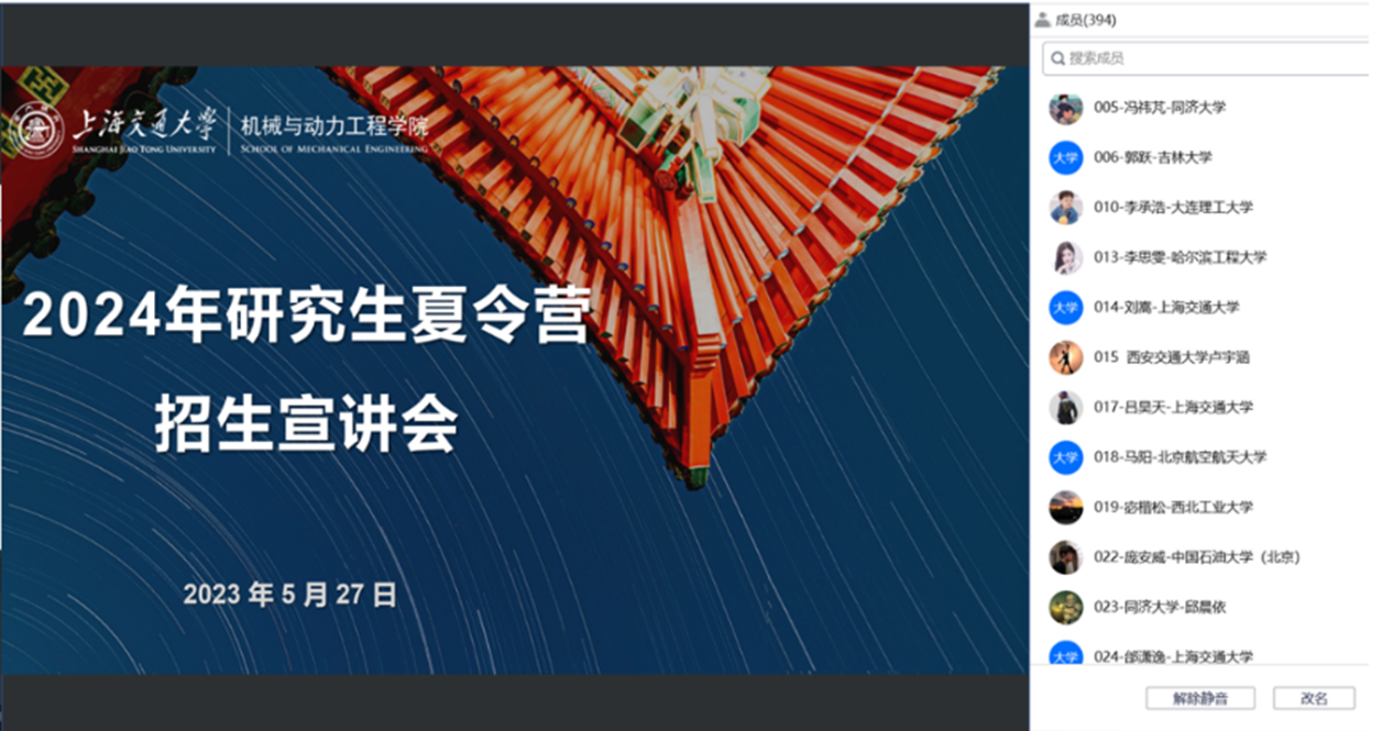5月27日,80足球直播吧在线举办2024年研究生夏令营招生宣讲会。上海交通大学副教务长吴静怡,学院院长杜朝辉、副院长李玉阳,薄板结构制造研究所所长李永兵、核科学与工程学院院长顾汉洋、工业工程与管理系副系主任夏唐斌等,与广大学子齐聚云端,就2024年研究生夏令营活动进行了宣讲与交流。