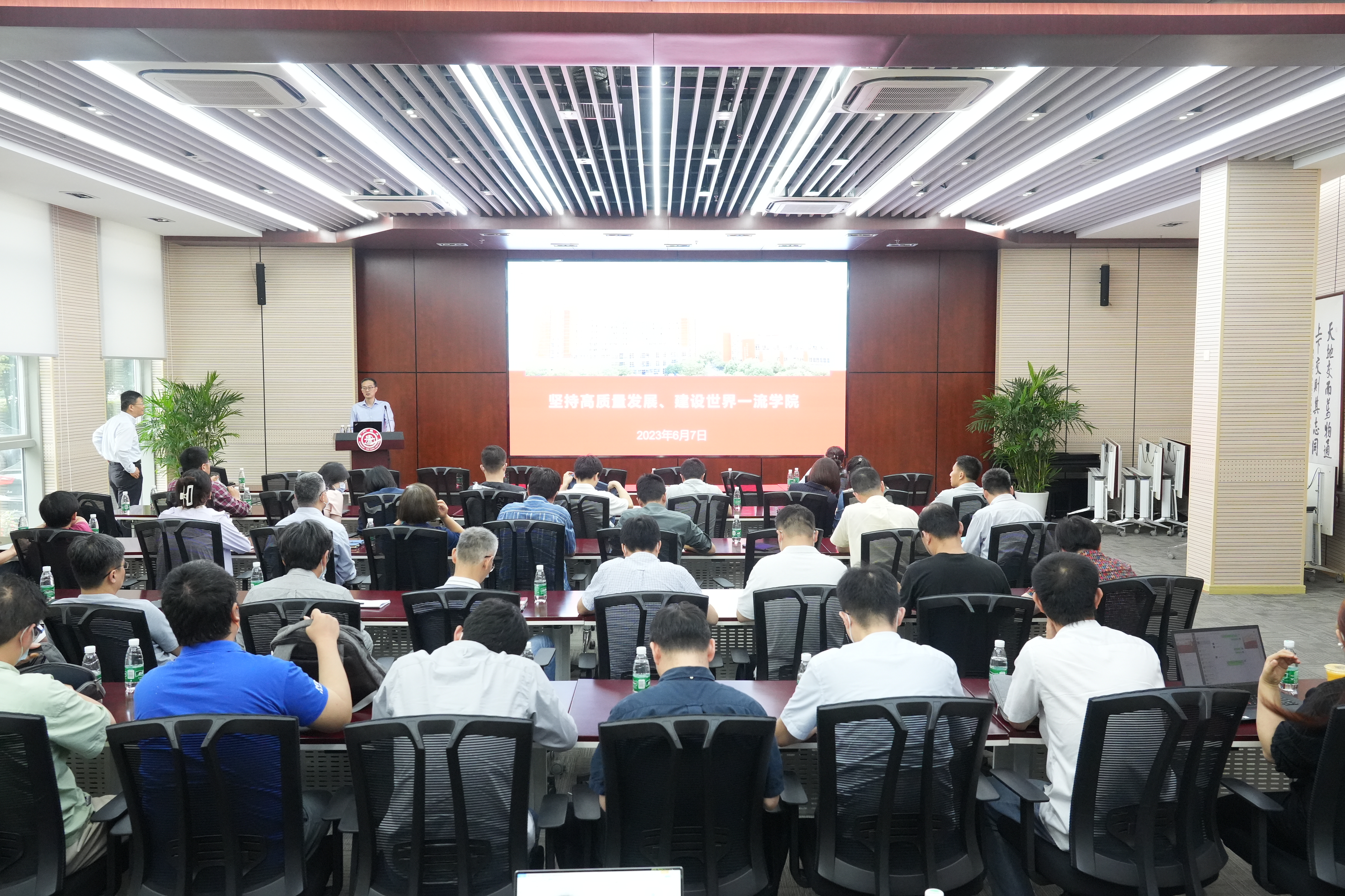 杜朝辉围绕主题教育总要求、习近平总书记关于高质量发展的重要论述,立足学院办学情况,结合“十四五”发展规划,深入分析师资队伍建设、人才培养面临的问题,表示学院将不断改进选聘和培养方式,分类分层次制定不同的人才支持举措,关注和培养具有发展潜力的中青年骨干教师尽快成长,形成结构合理、可持续发展的人才梯队。他还介绍了钱学森工程科学试点班建设方案,希望大家加大对教学工作的投入,提高课堂教学质量,打通课程建设“最后一公里”,提高专业吸引力和学生对专业的认同感,同时加强研究生培养管理,提升人才培养质量。
