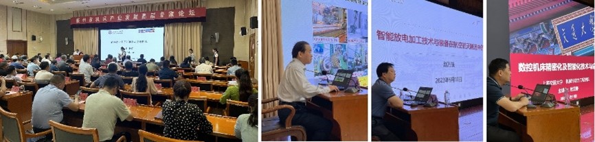 为推动主题教育走深走实,研究所党支部与交大智邦枣庄基地党支部以“党建+科研”的形式,通过参观万级洁净恒温恒湿车间、高端热处理车间,以及主题座谈等活动,分享主题教育的学习感悟,结合专业领域开展技术交流,调研收集企业当下的技术难题,推进产学研深度融合。研究所党支部成员还参加了滕州市机床产业发展高级专家论坛,宣传科研成果,积极寻求合作伙伴,孕育新的产学研融合项目。陈明教授、赵万生教授、杜正春副教授分别围绕“高性能刀具设计制备与应用”、“航空航天发动机核心部件放电加工工艺装备与智能化”、“数控机床精密化及智能化技术与应用”主题做学术报告,论坛吸引了100余家滕州当地的机床厂家代表参加。大家还参观了滕州市领雁企业“威达重工”、墨子工业园区,推进主题教育与业务工作融合,深入了解行业发展趋势。