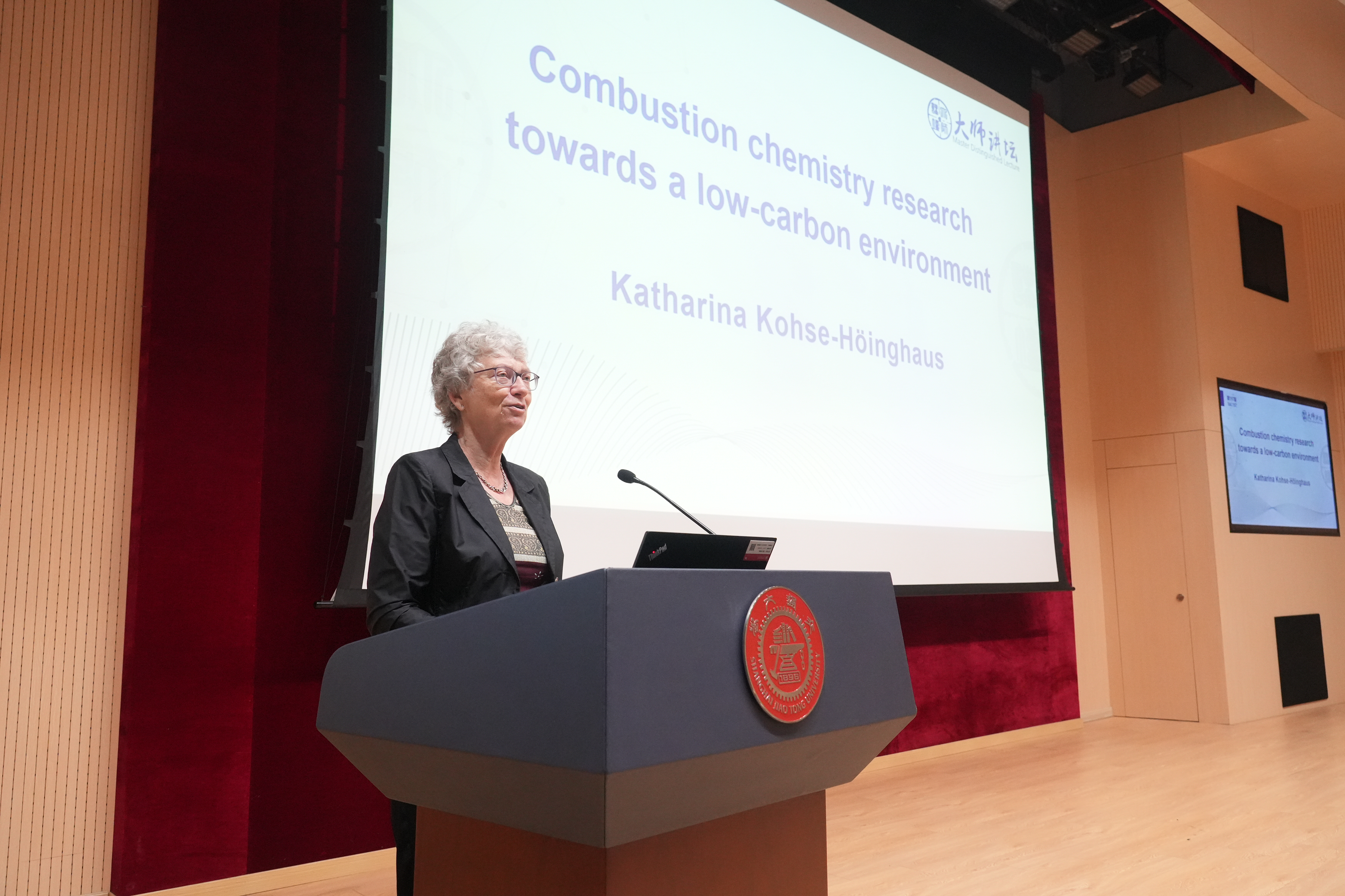 Katharina Kohse-Höinghaus院士分析了目前全球面临的气候和环境问题,结合燃烧化学研究中的最新实例,深入浅出地阐述了替代燃料、掺混燃料、新型燃烧和后处理技术等前沿燃烧研究在实现双碳目标中的重要作用,并与参会师生进行了互动交流。