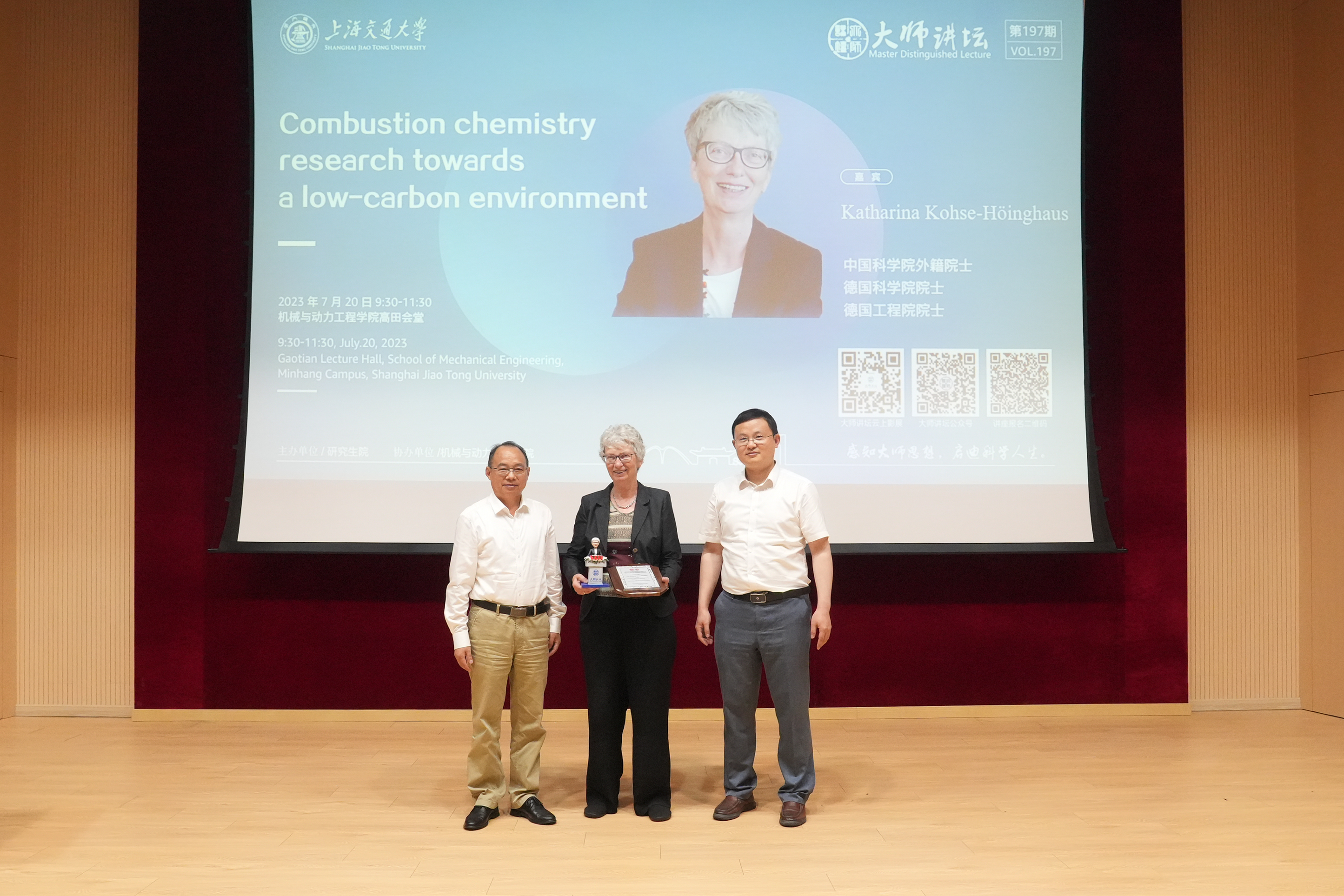 7月20日,中国科学院外籍院士、欧洲科学院院士、德国科学院院士、德国工程院院士、国际燃烧学会前主席Katharina Kohse-Höinghaus应邀访问上海交通大学,并作为第197期大师讲坛嘉宾,带来主题为“面向低碳未来的燃烧化学研究”的精彩报告。