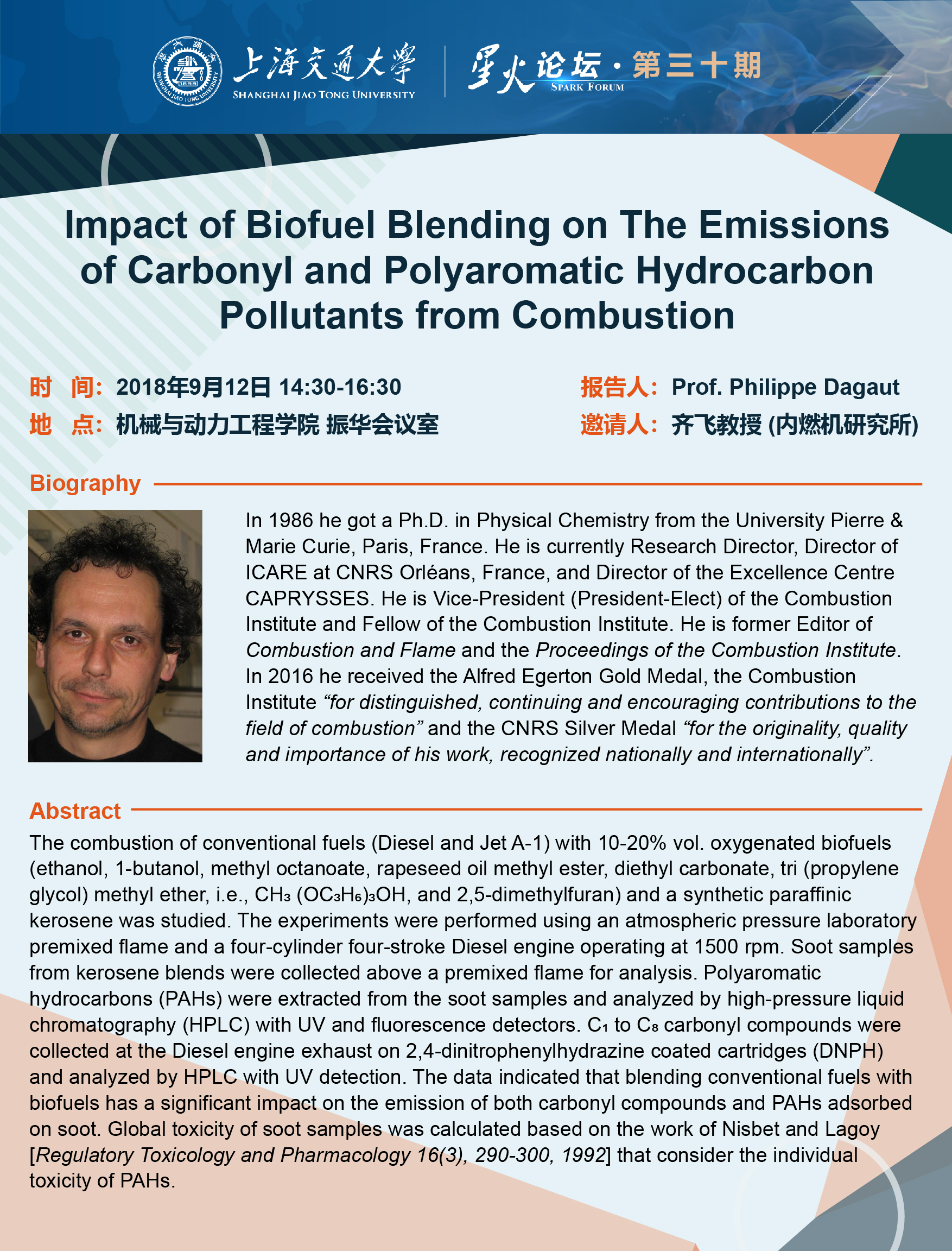题 目:Impact of biofuel blending on the emissions of carbonyl and polyaromatic hydrocarbon pollutants from combustion