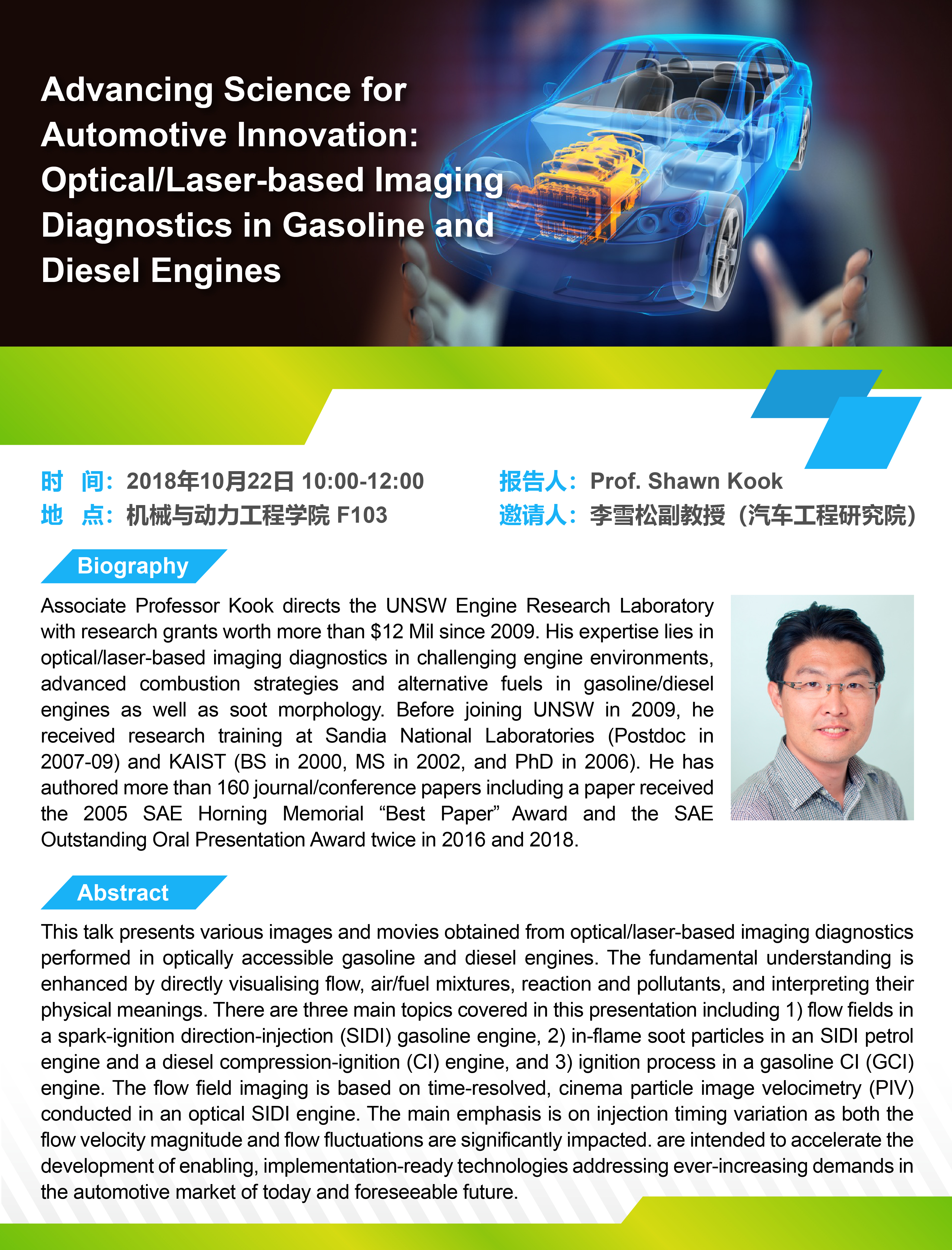 题 目:Advancing Science for Automotive Innovation: Optical/Laser-based Imaging Diagnostics in Gasoline and Diesel Engines