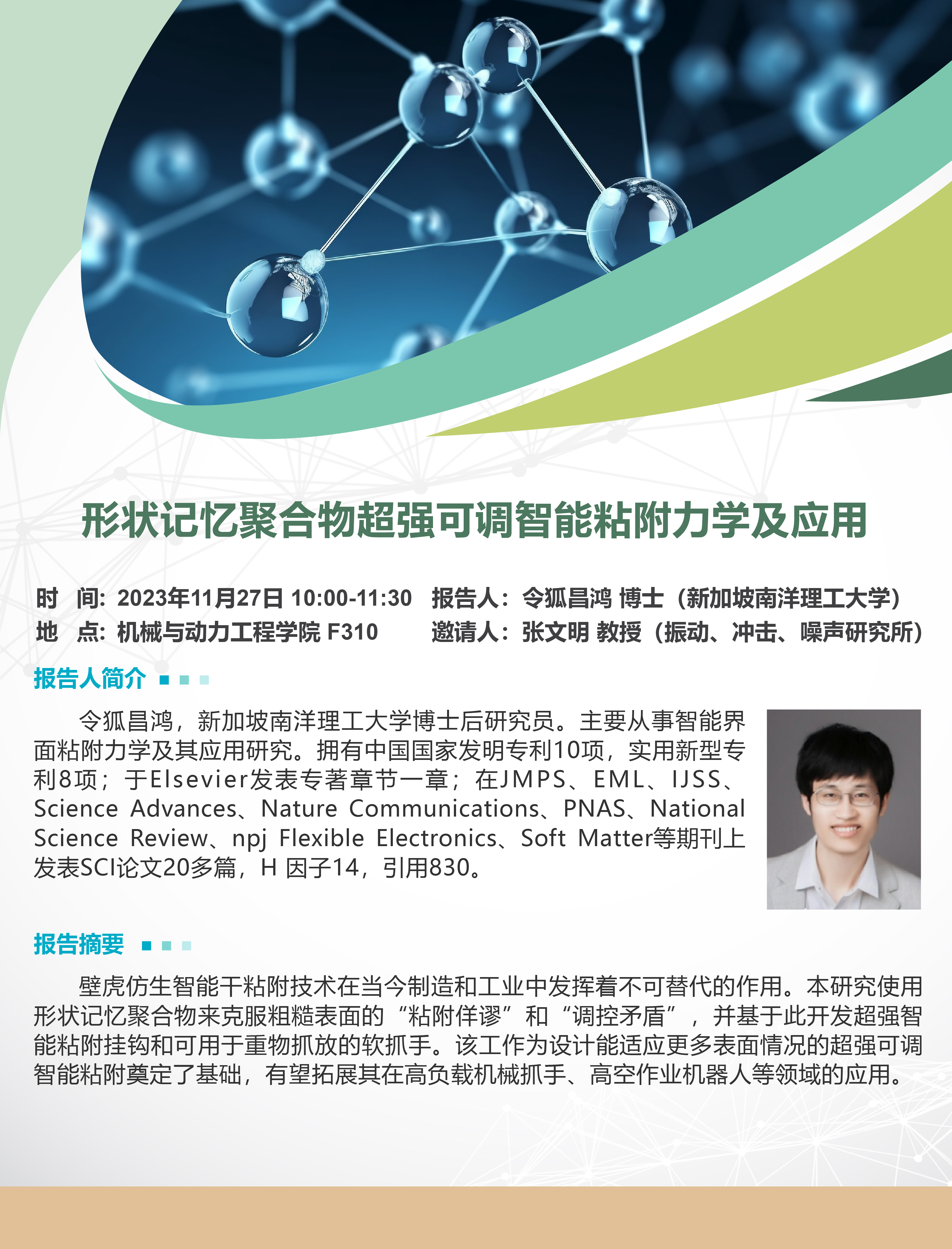 题目:形状记忆聚合物超强可调智能粘附力学及应用