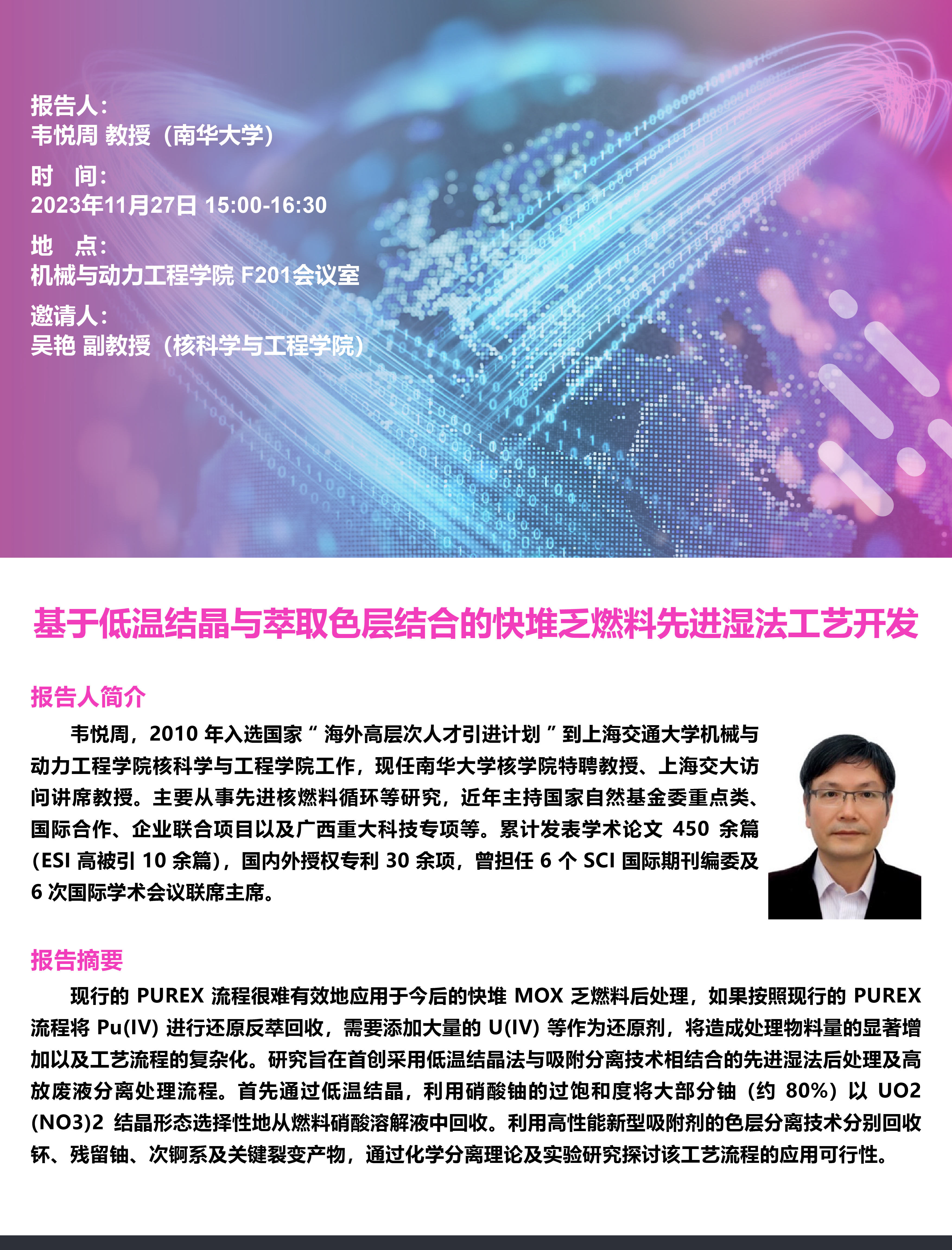 邀请人:吴艳 副教授( 核科学与工程学院 )