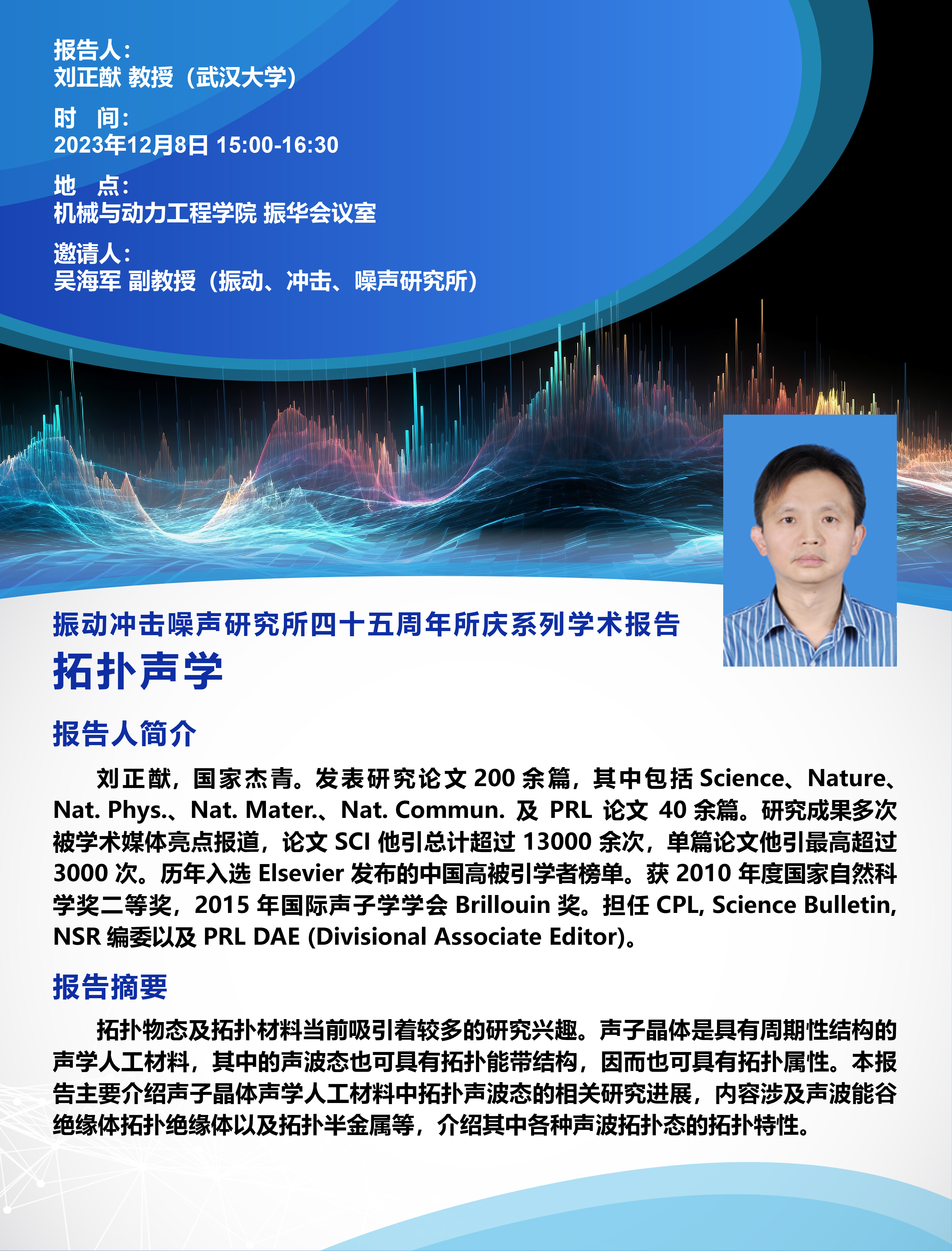 邀请人:吴海军 副教授(振动、冲击、噪声研究所)