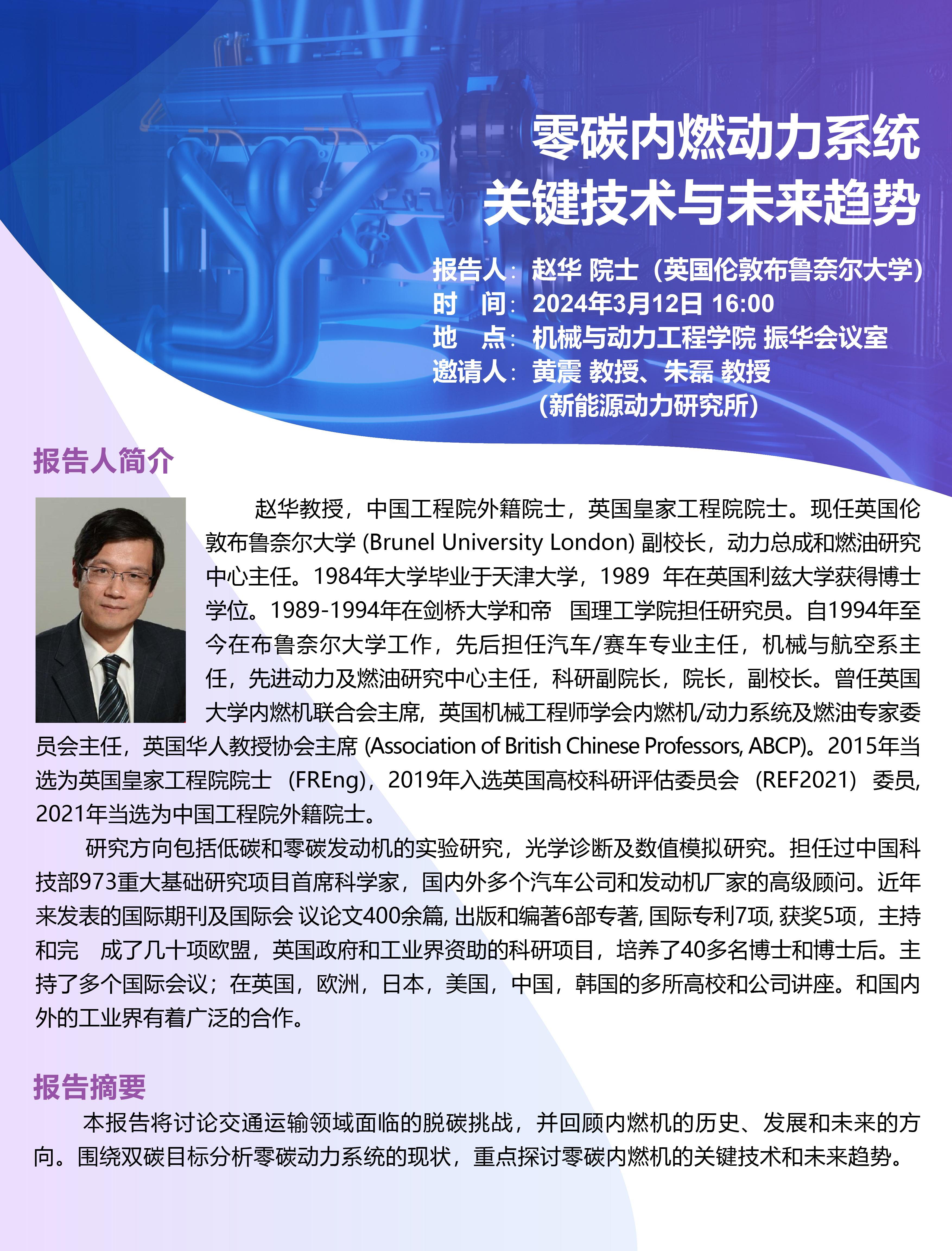 邀请人:黄震 教授、朱磊 教授(新能源动力研究所)