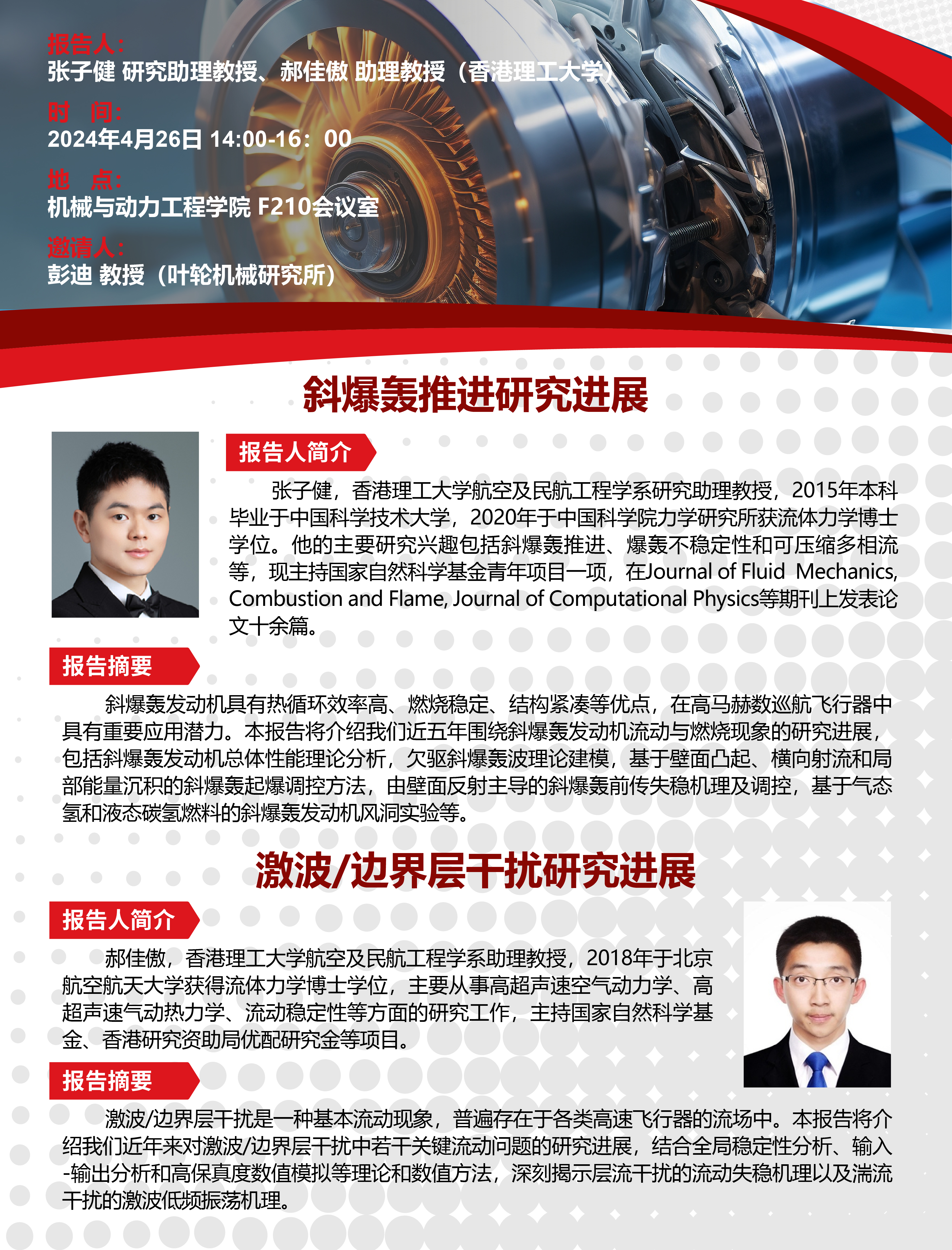 题目:斜爆轰推进研究进展 / 激波/边界层干扰研究进展