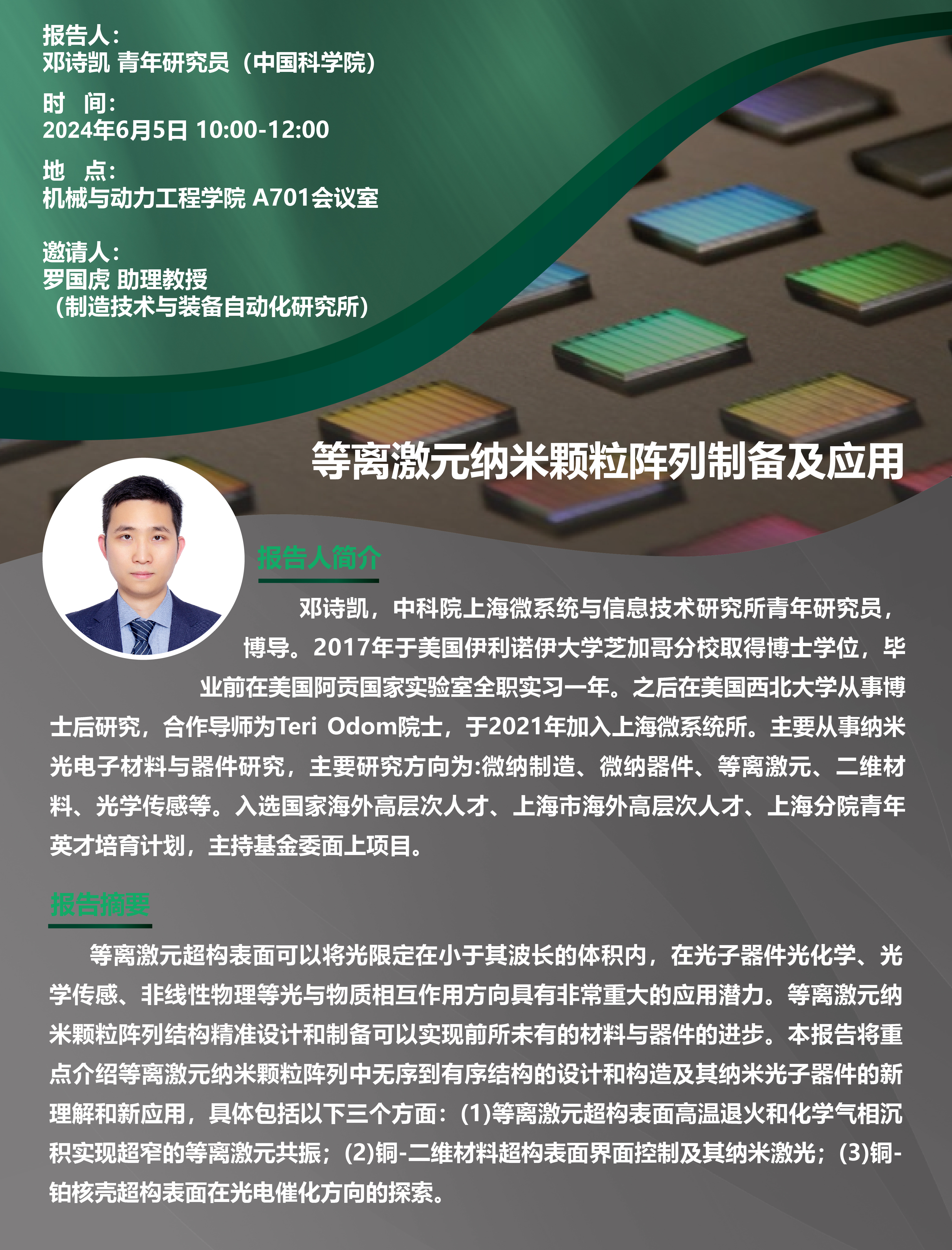 邀请人:罗国虎 助理教授(制造技术与装备自动化研究所)