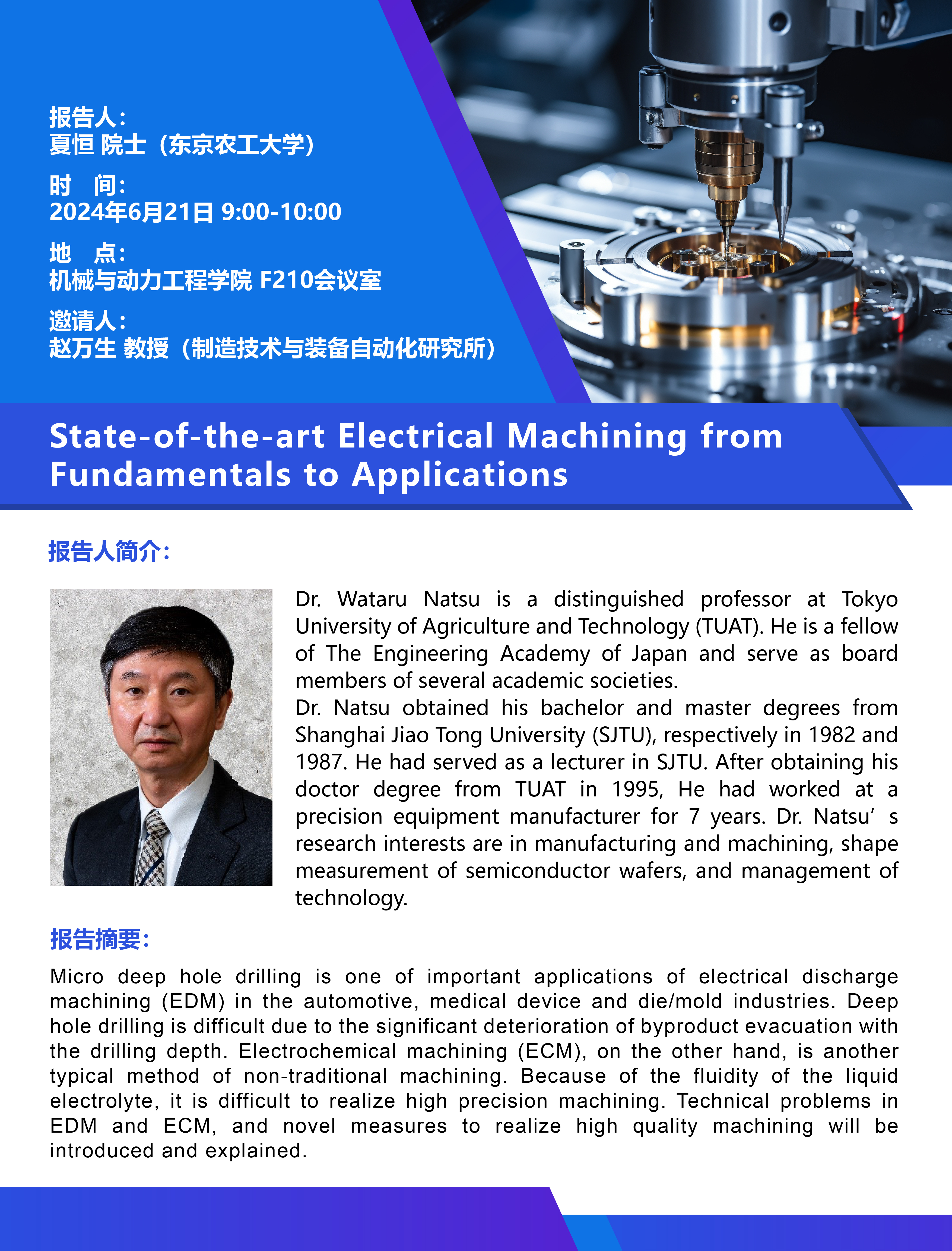 邀请人:赵万生 教授(制造技术与装备自动化研究所)